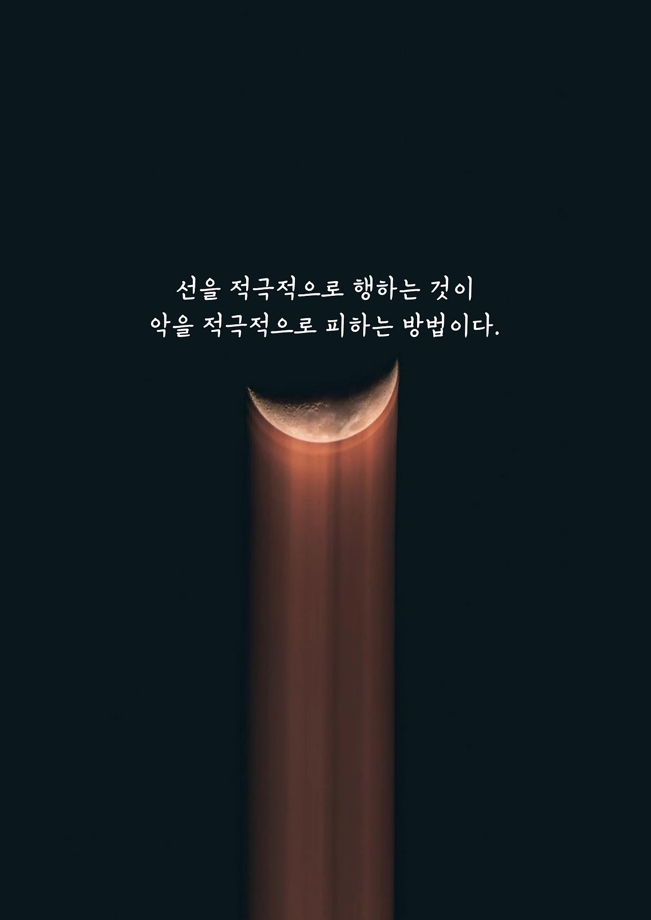 우리는 좋은 일 하면 다른 사람이 덕 본다고 생각한다. 맞는 말이다. 그런데 좋은 일 했을 때 가장 큰 수혜자는 그가 아닌 나다. 좋은 일을 하면 좀 더 좋은 사람이 되고 싶은 마음이 들기 때문이다. 반대로도 마찬가지여서, 나쁜 일을 하면 다시 나쁜 일을 저지르기 쉽다. 선이 선을 낳고 악이 악을 낳는 것인데, 그러면 좀처럼 멈출 수 없다.
