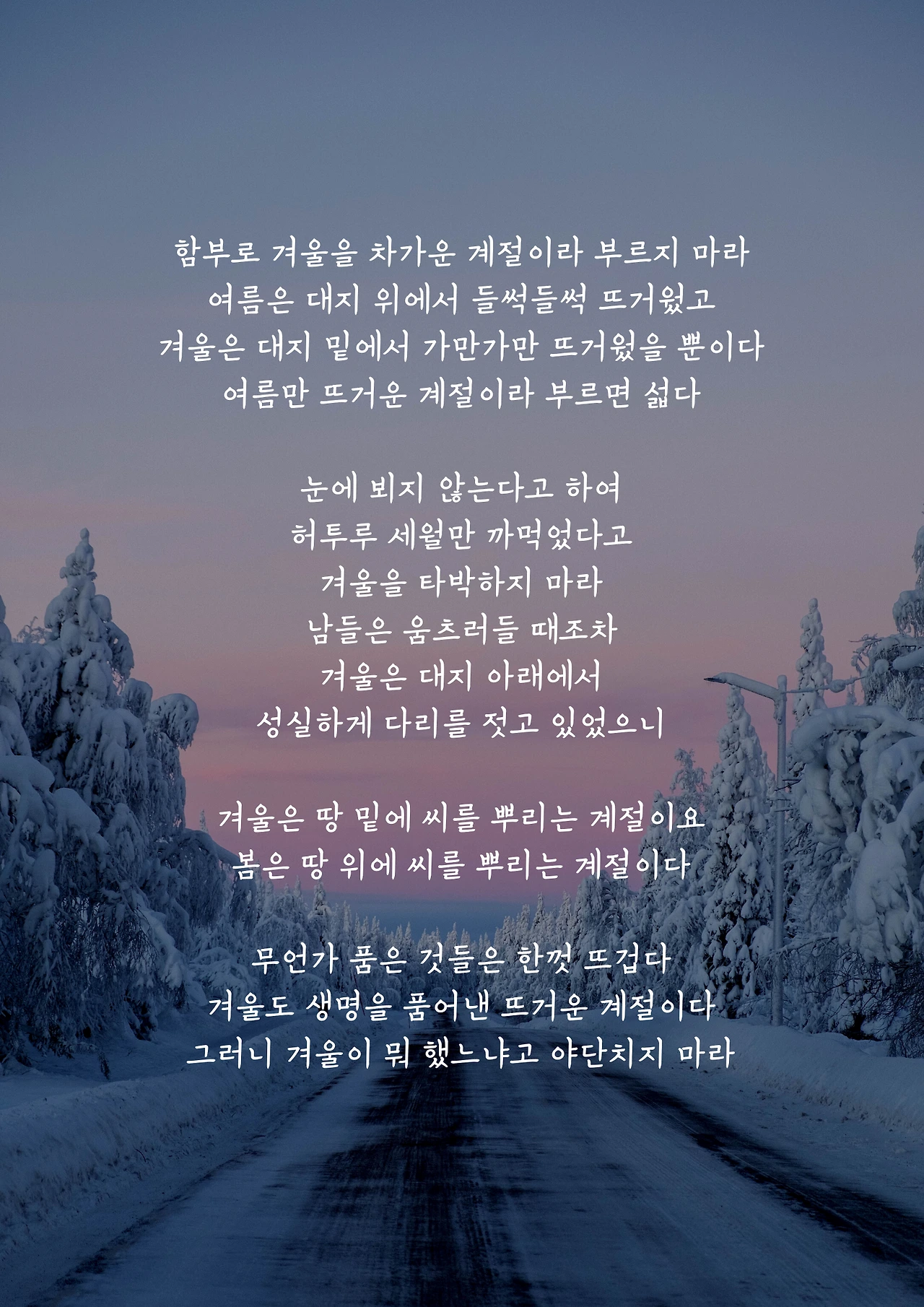 함부로 겨울을 차가운 계절이라 부르지 마라