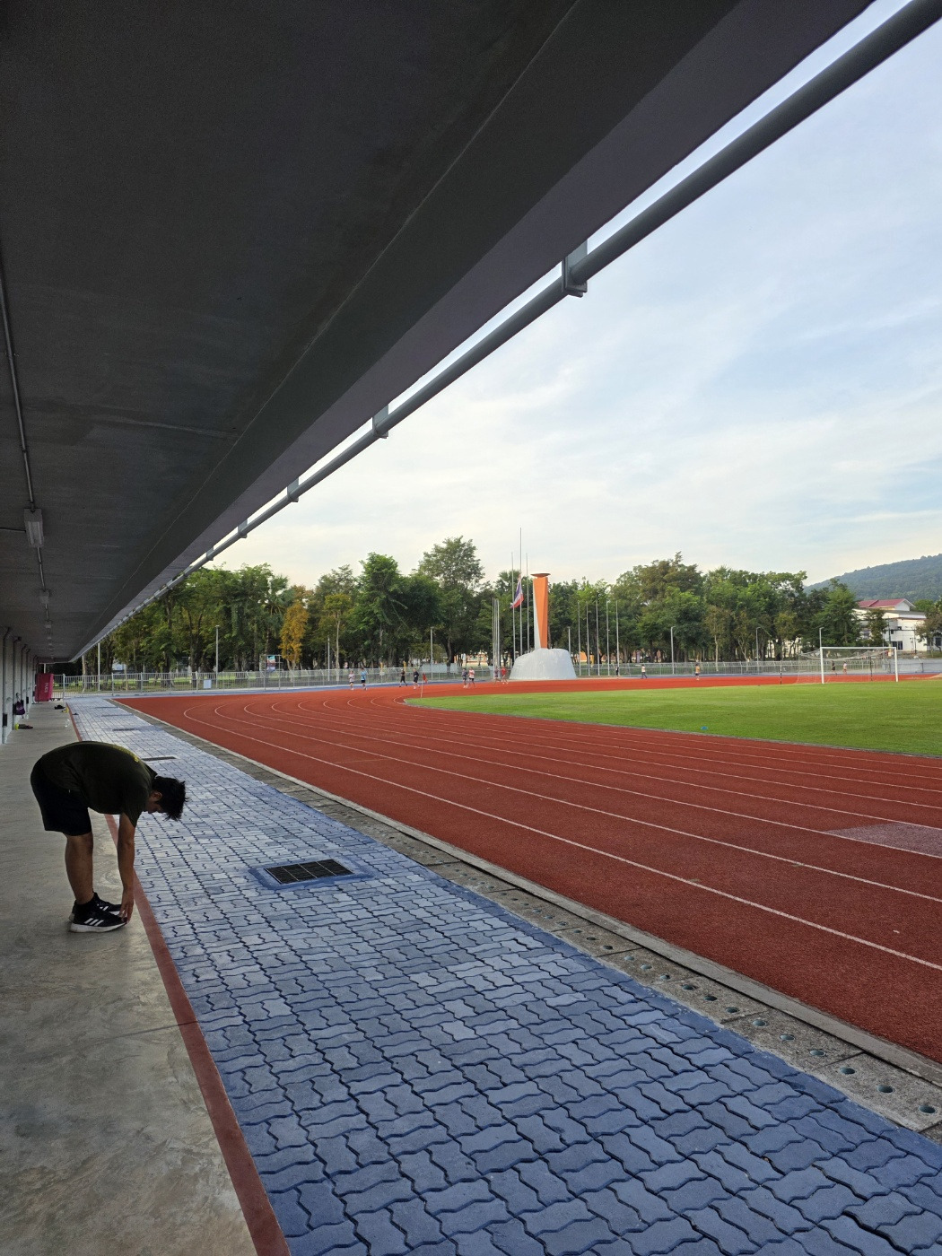 트랙은 밤이 되자 전혀 다른 얼굴을 하고 있었다. 조명이 켜진 트랙 위로 선선한 공기가 내려앉았다. 사람들도 이런 날씨가 야외 활동을 하기에 딱 좋다고 느꼈는지 산책하러 온 가족, 뛰러온 젊은이들로 가득 했다. '여기서 훈련을 할 수 있을까?' 생각하며 쿤을 따라갔다. 우리는 축구 골대 옆 빈 공간으로 갔다. 스트레칭을 시작하자 갑자기 비가 내리는게 아닌가. 정말 이런 날에. 아쉬운 눈빛의 나를 보며 그는 아무렇지 않게 말했다. “괜찮아요, 이쪽으로 오세요.” 그렇게 나의 첫 러닝 수업은 트랙 옆 짐 보관소에서 시작됐다.