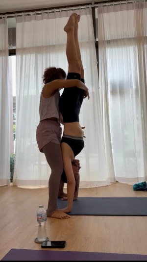 머리서기를 할 때면 애니가 내 옆에 함께 앉았다. 어디에 힘을 줘야 할지, 어떤 순서로 움직여야 하는지를 단계별로 알려줬다. 다른 수강생들은 옆에 앉아 조용히, 진지하게 그 과정을 지켜봤다. 잘 하지 못하더라도 도전할 때마다 박수를 쳐준다. 그것도 꽤 크게.(환호성도 지르면서) 단, '오늘은 패스할게요'라는 선택지는 없다. 무조건 해보는 분위기다.