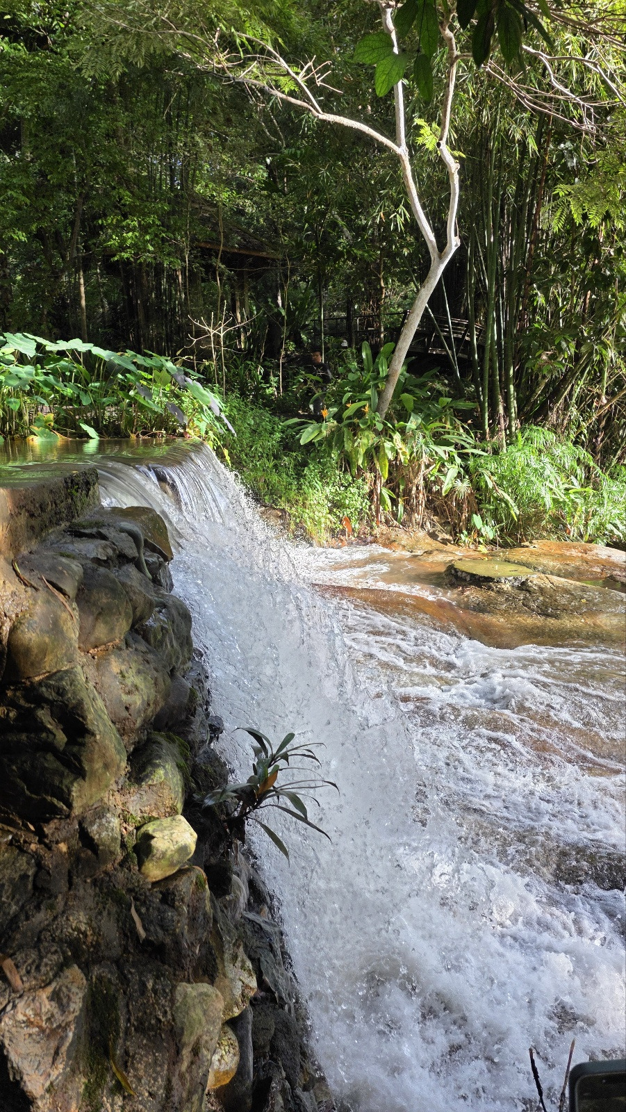 왓파랏 사원에는 산 정상에서 흘러내리는 개울이 있었다. 빠르게 흘러가는 물은 멋진 풍경과 함께 아래로 떨어졌다. 바라만 보고 있어도 시원한 멋진 절경이었다. 승려들의 휴식처였다고 하는데, 오늘은 우리들의 휴식처가 되었다. 잠시 사진을 찍고 물을 마신 후, 다시 올라가기 시작했다.