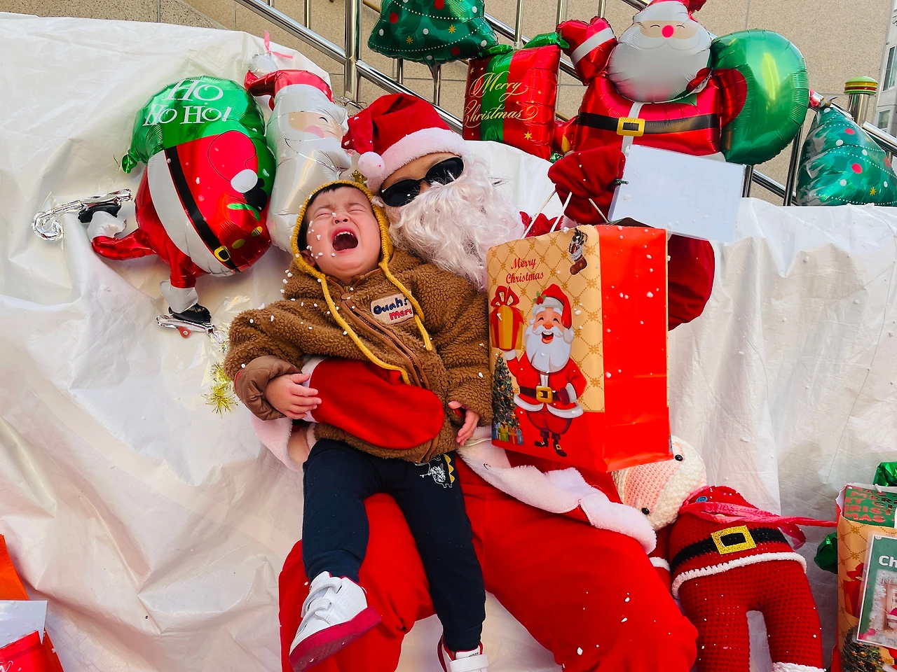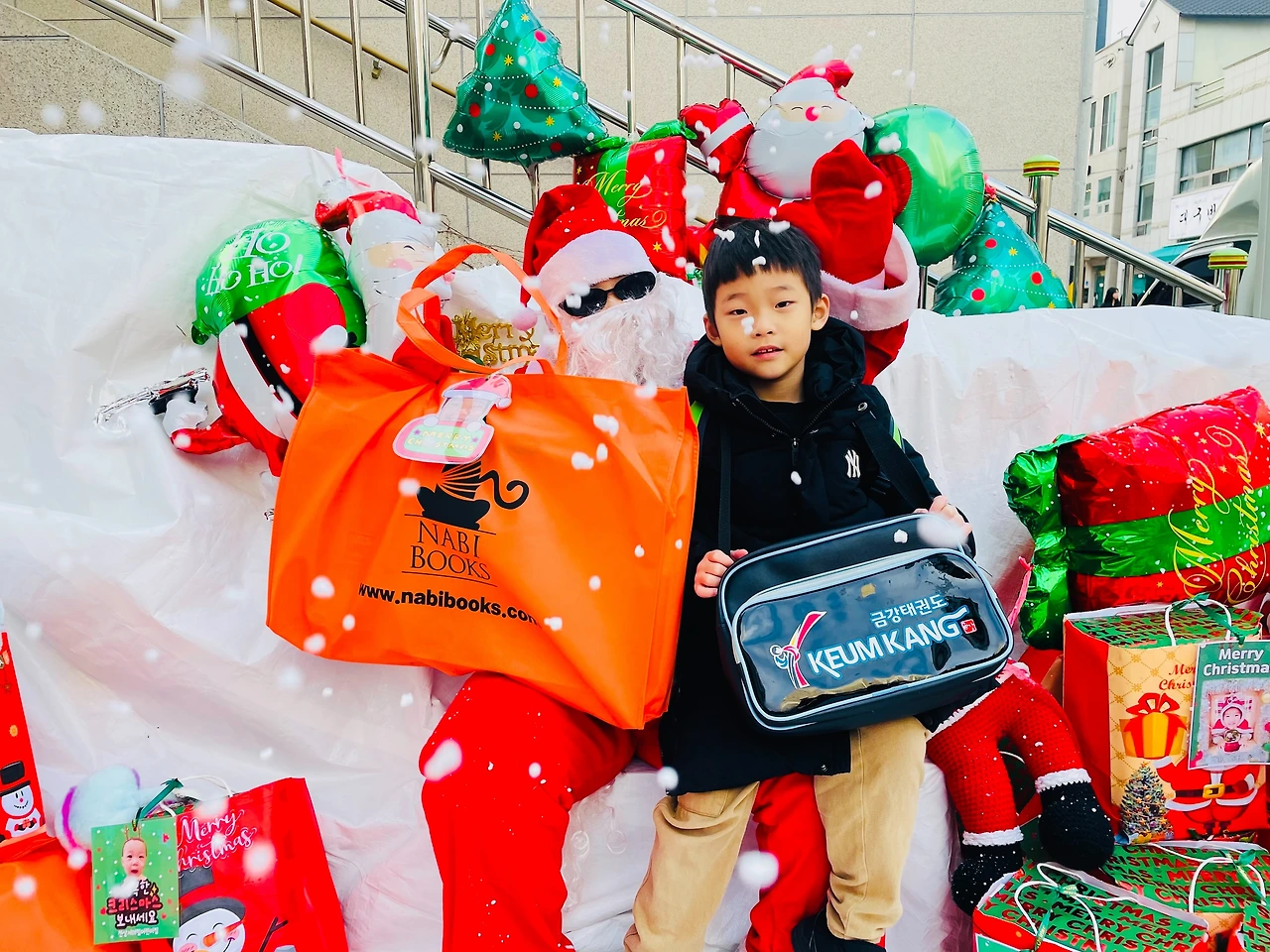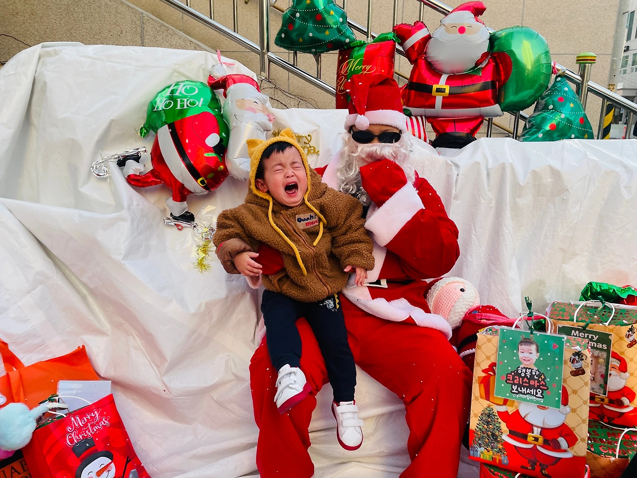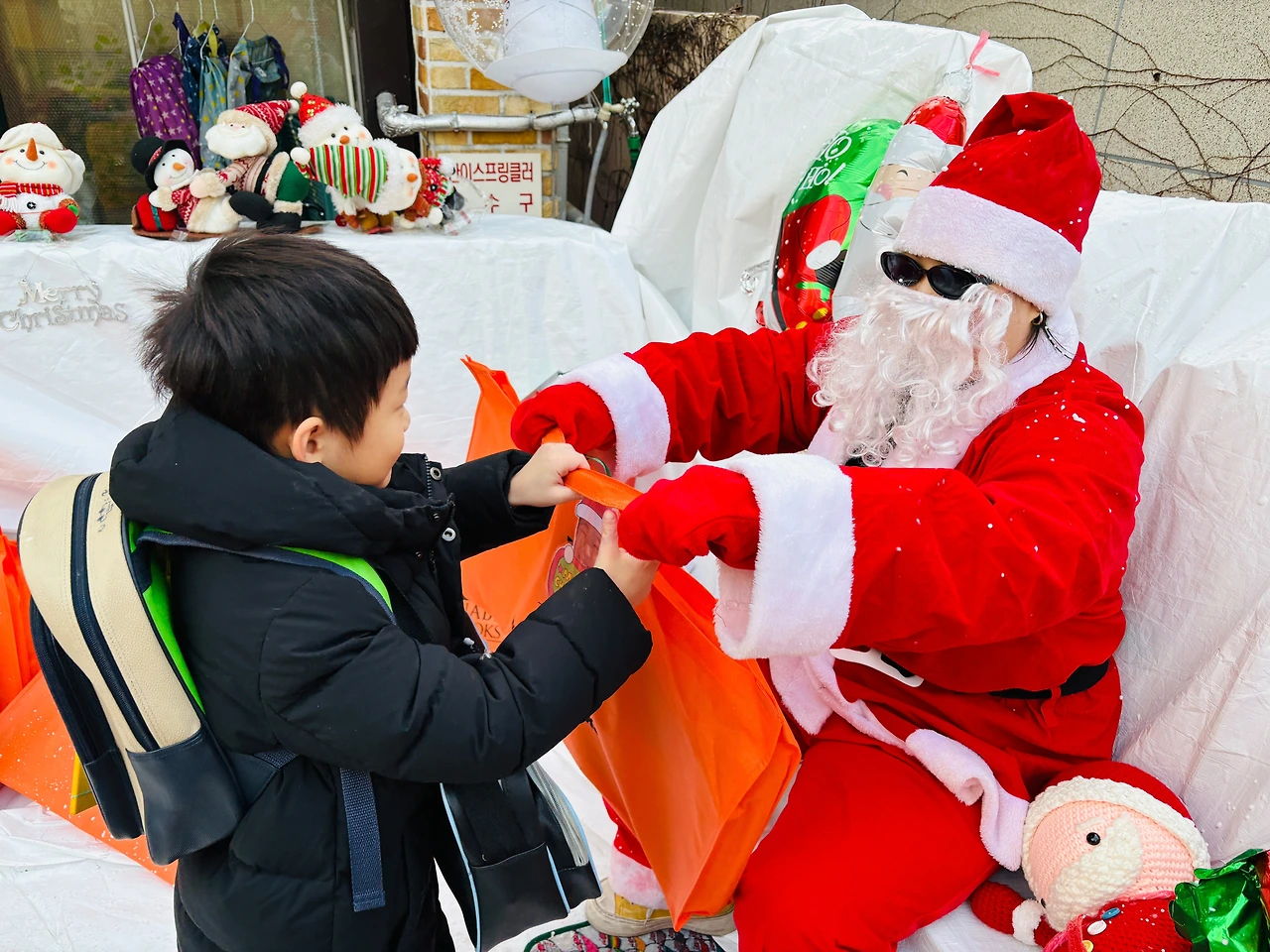 아이에게 물어보니 엄마, 자기, 동생 그리고 선물 주는 산타라 고한다.