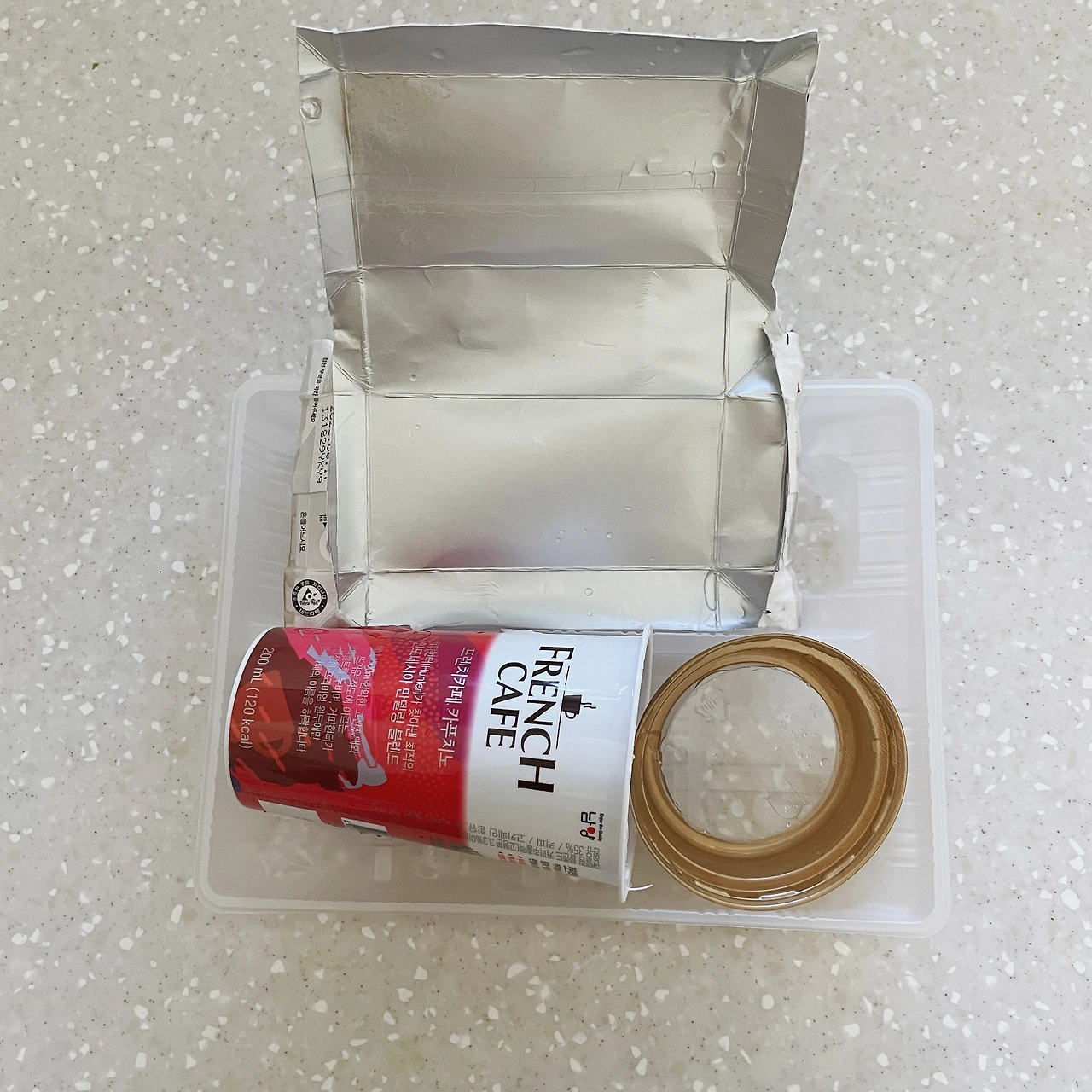 그렇다보니 라벨지를 떼어내는 그 작은일조차도 저녁에 한번에 몰아서 할때가 있다. 그러다보니 두유팩 4개, 양념장 1개, 음료수 1개등 여러 분리배출할것이 한번에나오는 날이 있다.