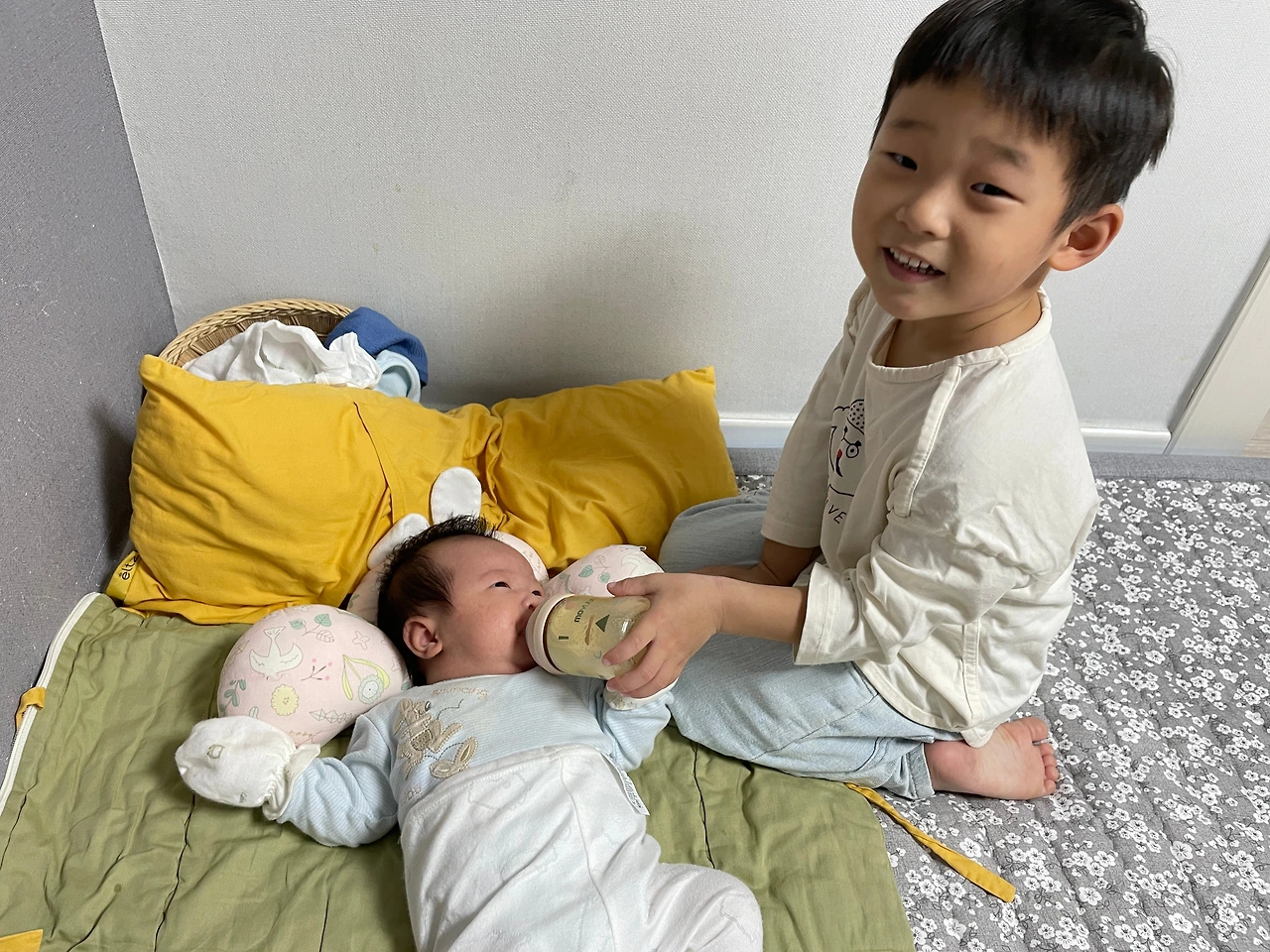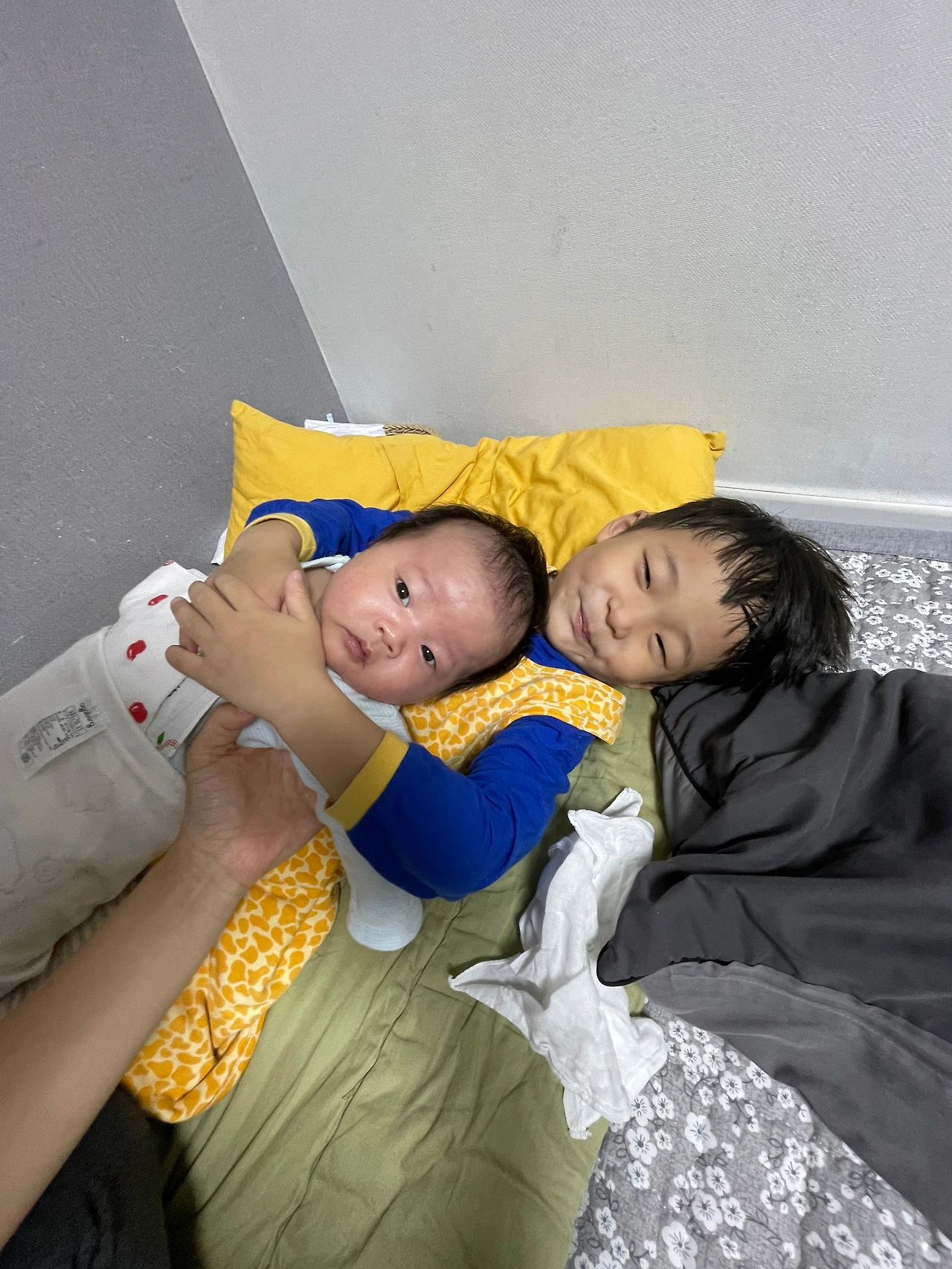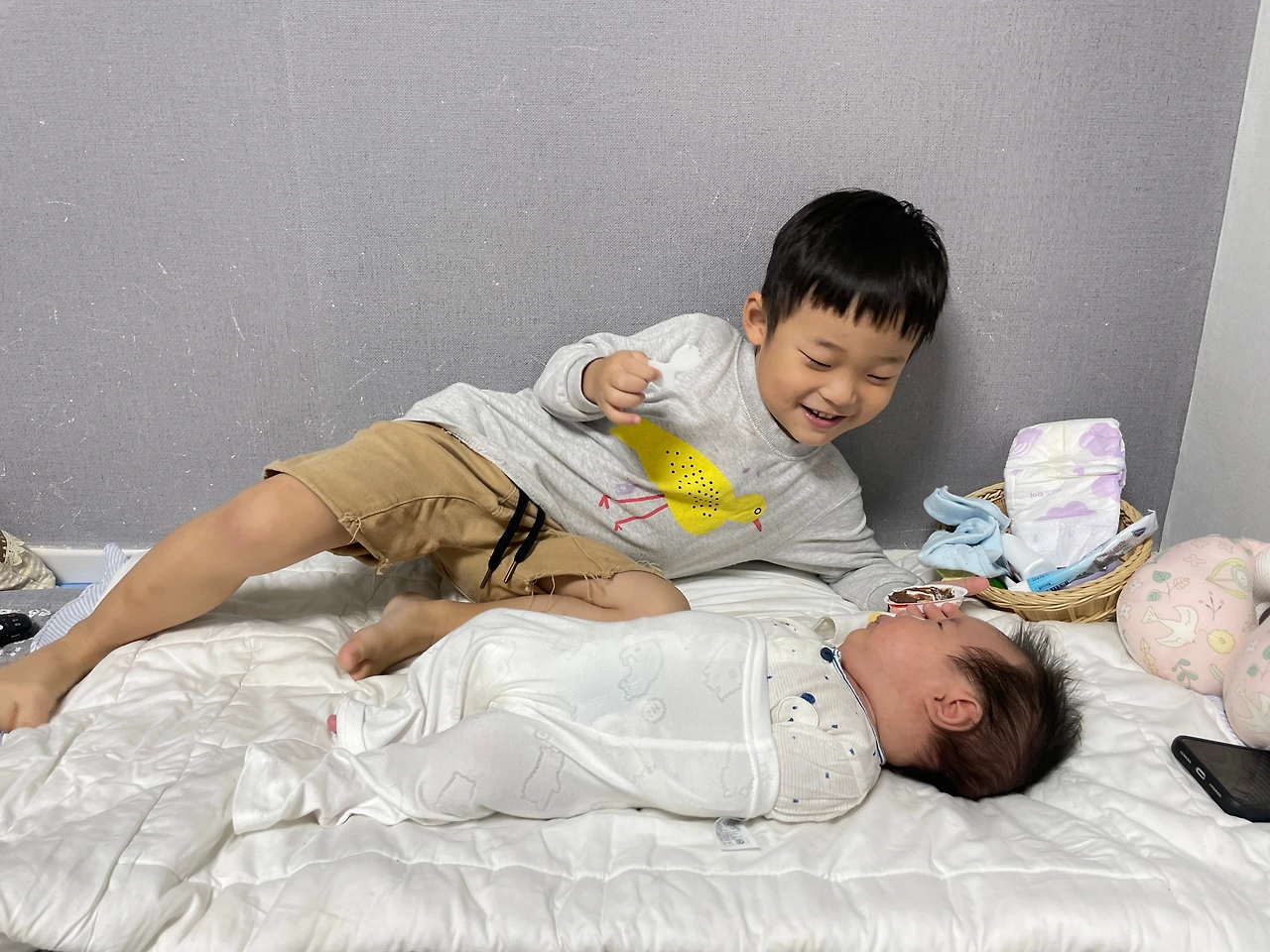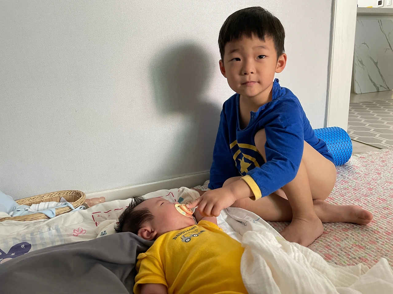 아이 둘, 신생아와 5살 아들내미 하루 종일 보는 거 솔직히 힘들지만