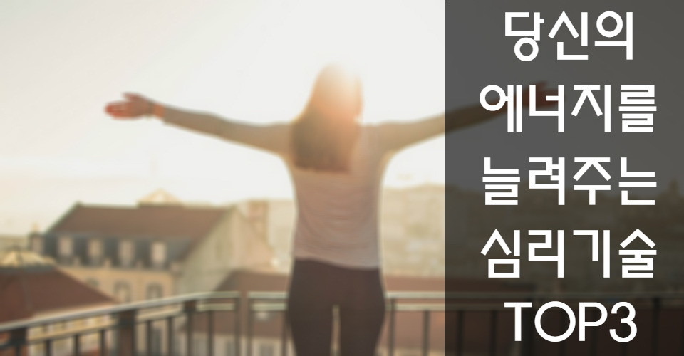 이렇게 세 가지 에너지를 늘리는데 도움되는 심리기술을 소개해보았습니다.