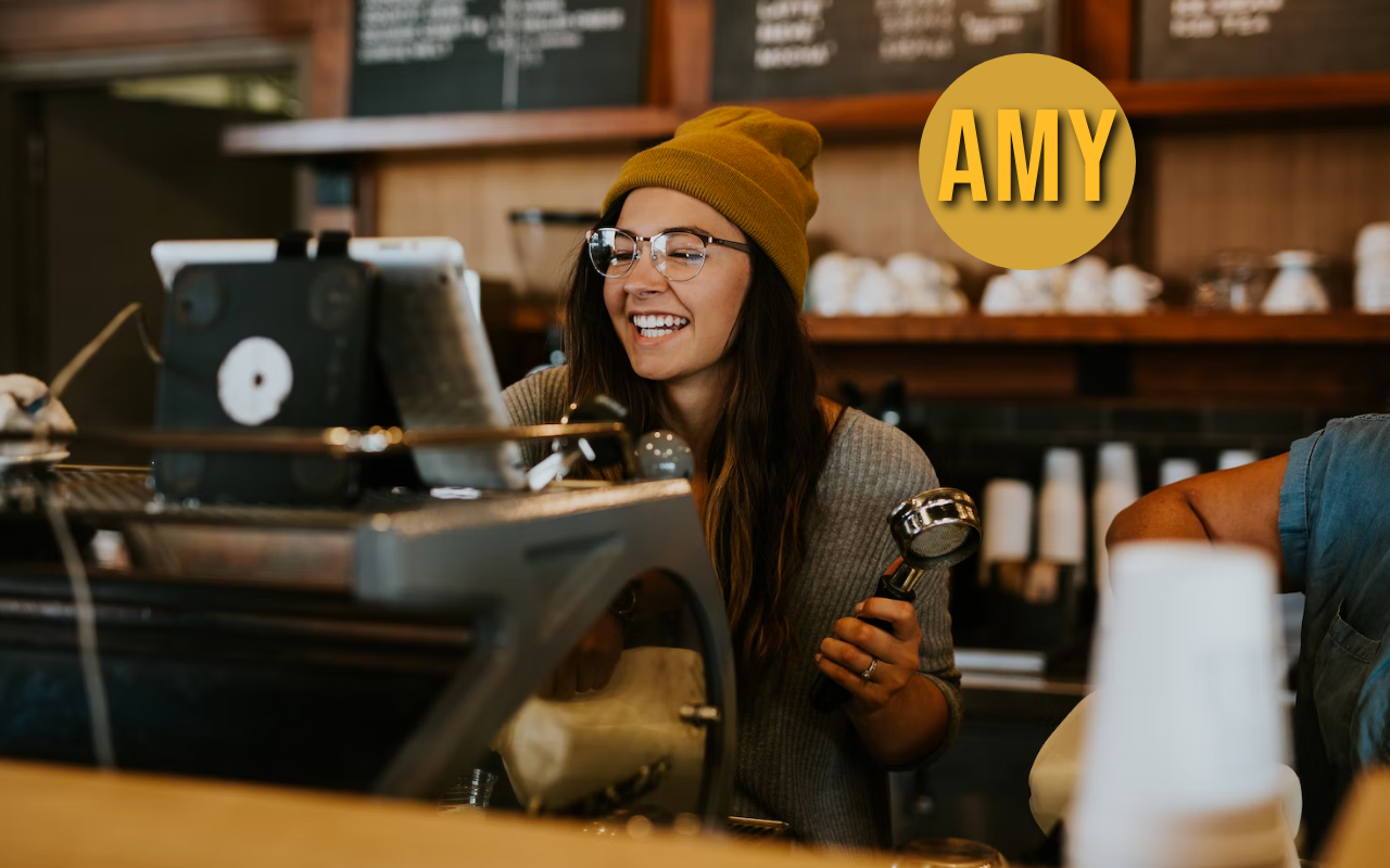 Amy: You're gonna love the place! Here is your coffee.