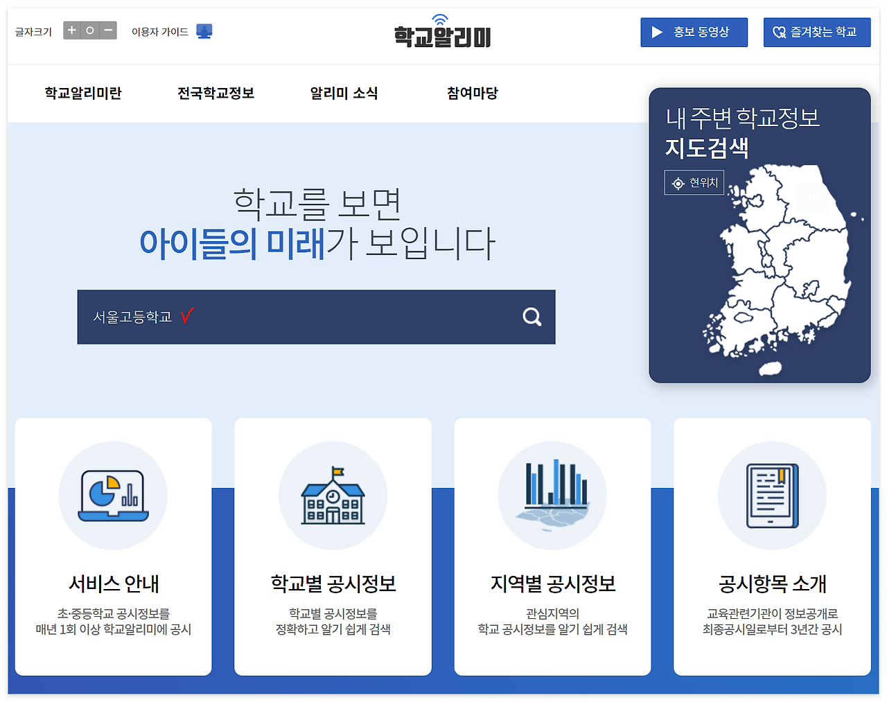 1. 학교알리미 홈페이지에서 학교 검색하기