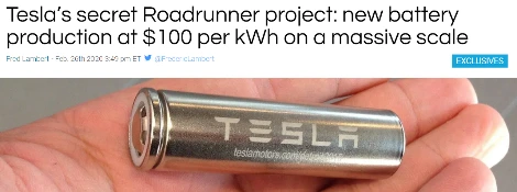 - Tesla’s secret Roadrunner project: new battery production at $100 per kWh on a massive scale (Electrek, 2020)