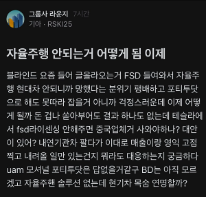 위 기사 내용이 한국 내 FSD 경험담과 함께 여기저기 회자되며,