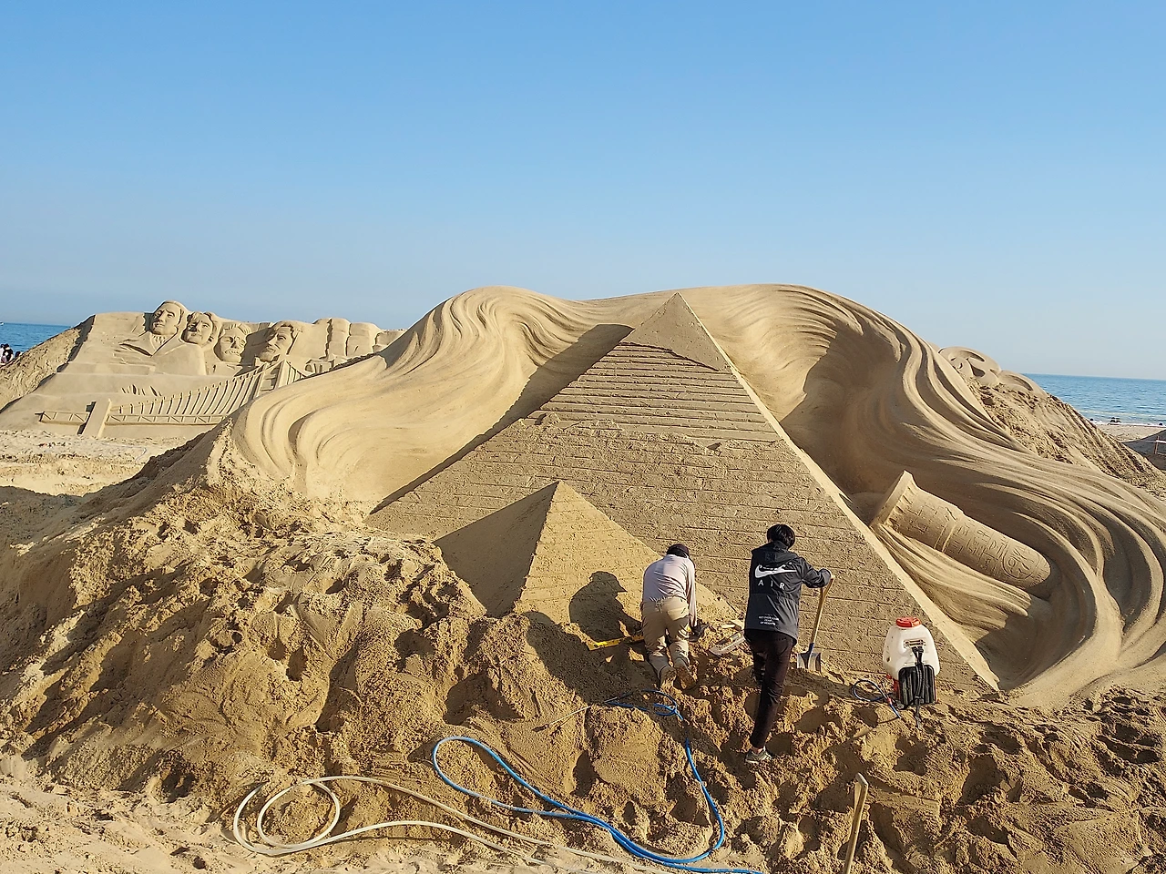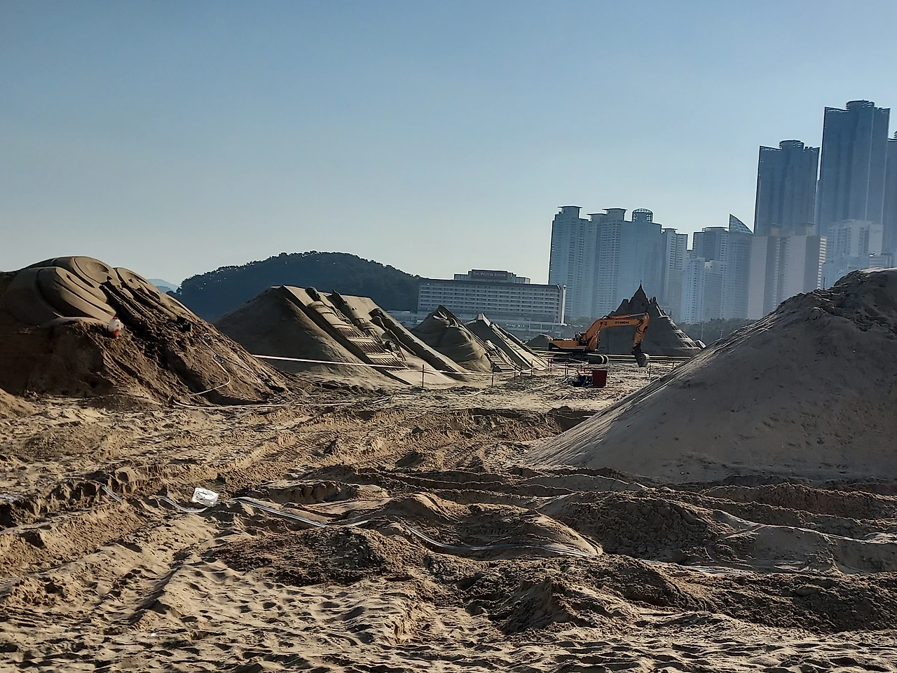 물론, 이스포츠 대회 행사용 포토존 홍보와 동시에 해운대 중앙광장에서 오른쪽 동백섬 방향에 '모래 축제'를 위해 5.20~5.23일 동안 각 나라의 상징적인 모래 형상을 만들고 있는 중이었다.