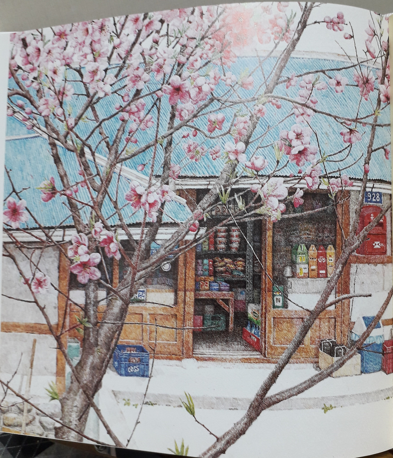 작가는 상점들 앞이나 뒤로 나무나 담벼락을 타고오르는 덩쿨을 그려넣었다 ... 내 기억에도 그려지는 나무 내가 자랐던 동네 구멍가게 앞에는 가을이 되면 단단하고 동그란 열매가 터지면서 포자들을 뿌리던 플라타너스 나무 한 그루와 전봇대가 있었던 기억이 어렴풋이 있다.