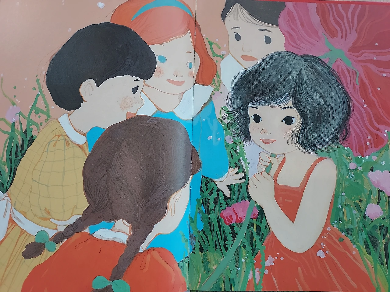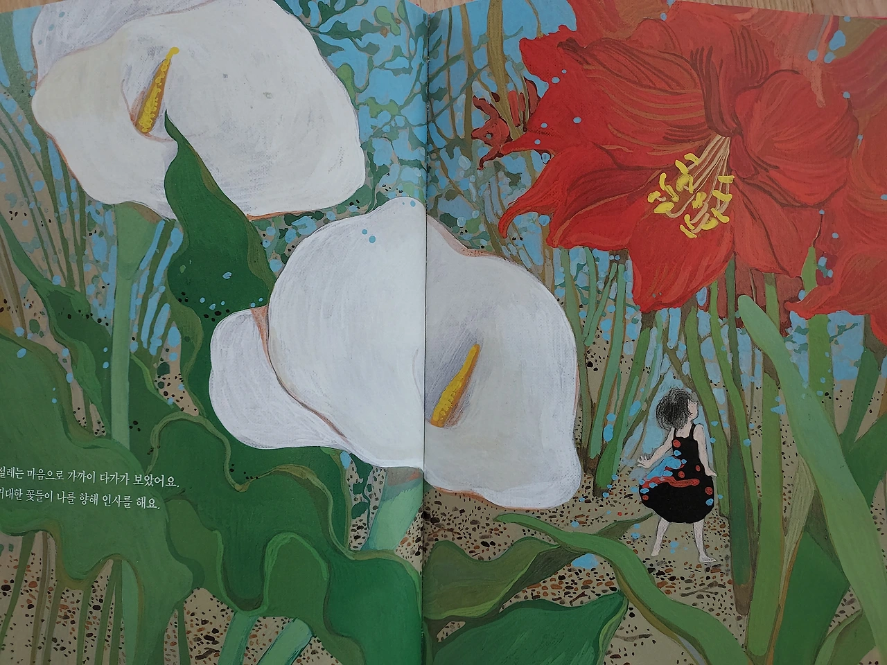 '한번'의 개방으로 많은 게 바뀔 수 있습니다. 소녀는 목소리를 따라서 발길을 옮기는 중입니다. 마음이 설레기까지 했고요. 거인의 정원에 피어있는 거대한 꽃들과 조우하며 인사를 나눕니다. 천천히 한 걸음씩 걷다 보니 소녀의 '기분'도 '시선'도 열리기 시작했나 봅니다.