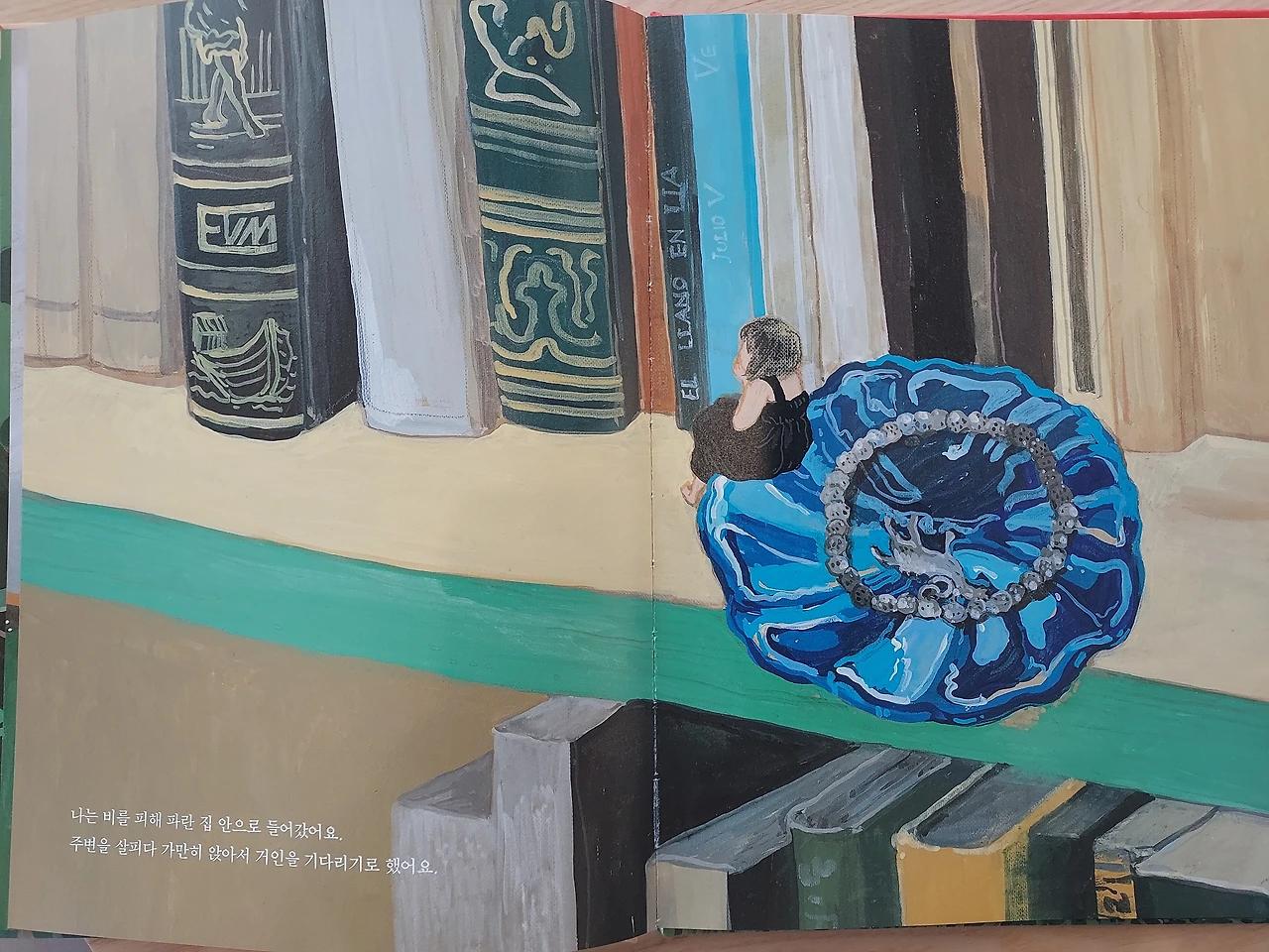 비를 피해 파란 집 안으로 들어갔어요.