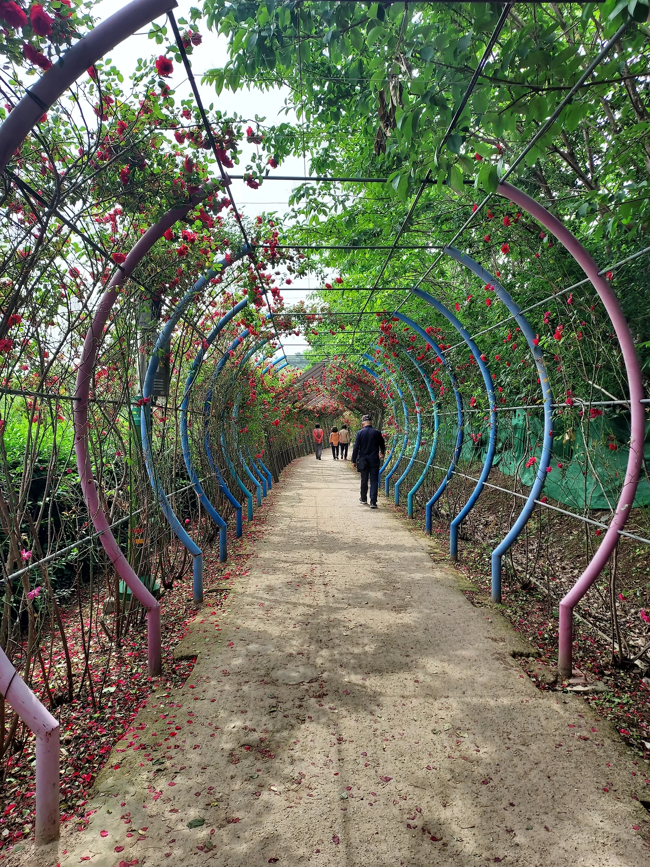 오른쪽. 왼쪽. 위쪽까지 반원을 그리며 만개한 장미들이 걸맞은 이름인 '장미터널'이 되었다.