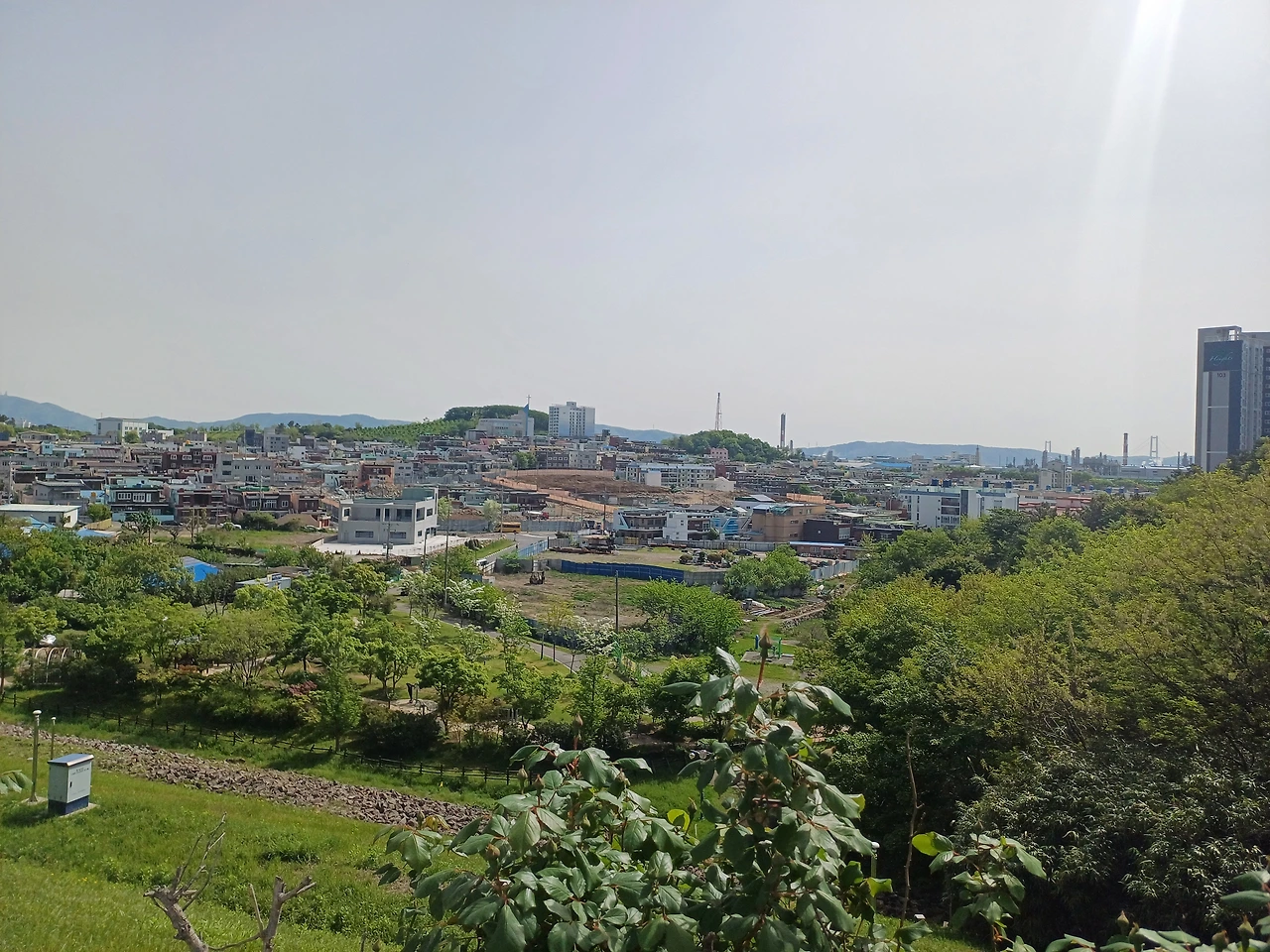 저 멀리 장생포 앞바다가 있다. 재개발 구역으로 묶인 저 마을을 사진에 담는다.