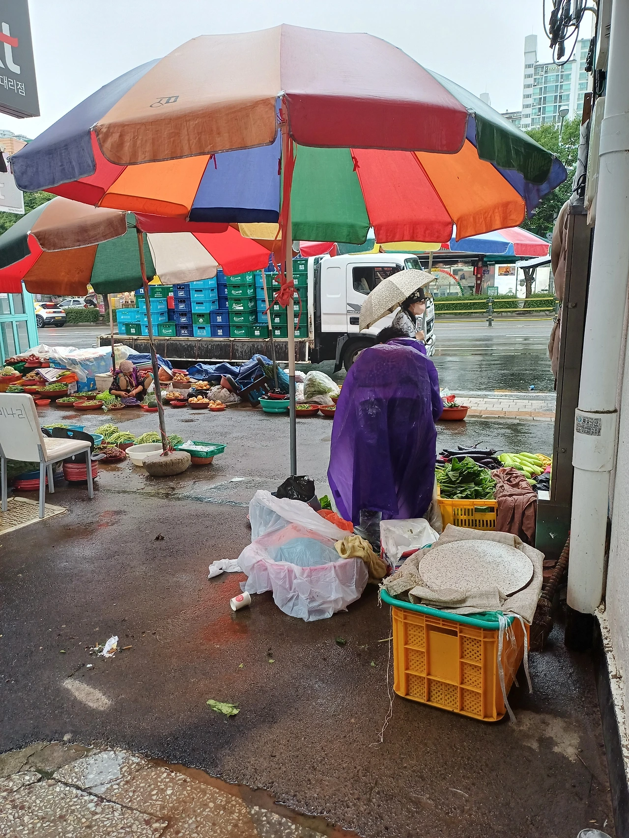 장마 첫날. 보라돌이 할머니는 채소 팔러 나오셨다..(초상권 보호를 위해 뒷태를 담았다.) 2024.07.09