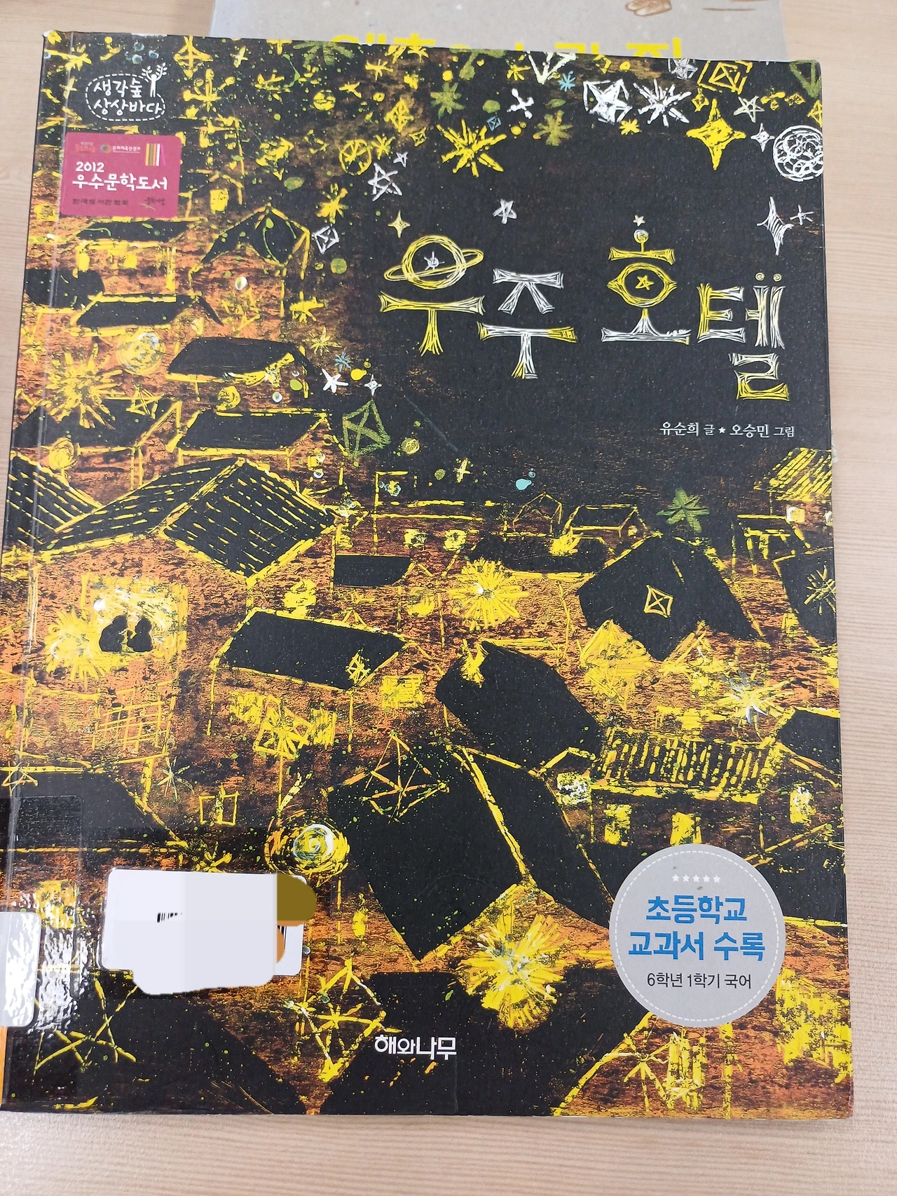 유순희 작가의 <우주 호텔>이라는 책으로 수업을 진행할텐데... 폐지를 줍는 할머니가 주인공이다. 하드 커버 책에 앞표지를 보면 별이 빛나는 밤에 소박한 사람들이 살고 있을 것 같은 동네를 위에서 내려다보듯 그린 그림이다. 하지만, 앞 표지와 달리 뒤표지는 밝은 대낮에 동네 풍경이다.