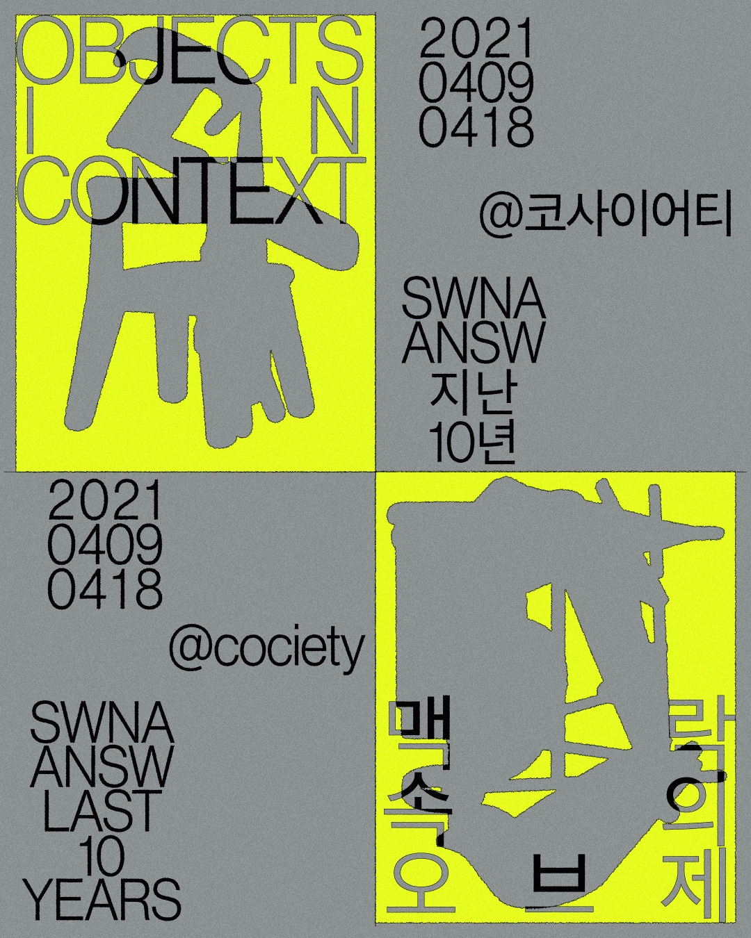 2021년 4월 9일부터 18일까지, 코사이어티에서 SWNA의 전시 <Objects in Context 맥락 속의 오브제>가 열립니다.