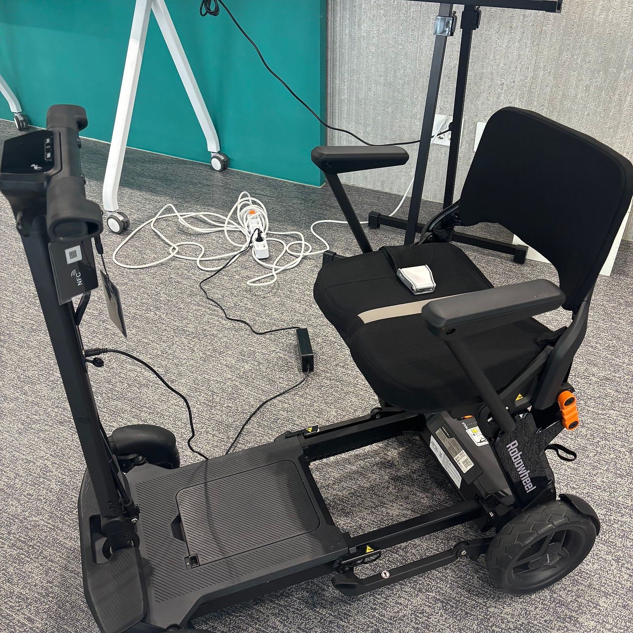 연구 학생으로서 9월에 시작한 첫 테스트는 '로보휠'이라는 보조공학기기의 사용성을 평가하는 거였다. '로보휠'은 카이스트 창업원 산하 스타트업에서 만든 대표 제품이며, 이 회사는 고령자와 장애인을 포함한 교통약자의 이동권 확대를 위한 기술 개발 등의 비전을 갖고 있다고 한다. 이 보조공학기기는 의료기기로 해당되는 제품은 아닌 범용성이 있는 제품이며, 이러한 비의료기기도 센터에서 사용성 평가를 할 수 있다.