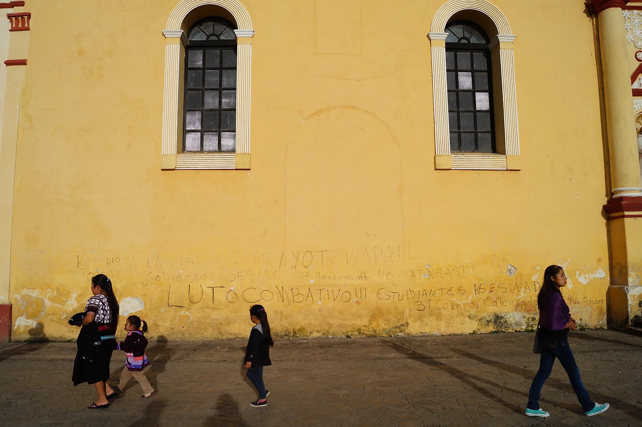오아하까로 이동하기 위해 터미널로 향하는데 사파티스타 행열이 간발의 차이로 소깔로를 지나갔다. 잠시 뒤 소깔로 에선 현재 수사 중인 '멕시코 교대 학생 실종사건'에 대한 정부의 진상규명을 바라는 대규모 시위가 있을 예정이라고 한다. 이에 대하여 아까 우리가 오벤띡 앞에서 만났던 부산하게 움직이던 수십 명의 사파티스타 민족 해방 군들이 '당신들의 고통은 우리의 고통이기도 하다'라는 문구를 들고 검은 복면으로 얼굴을 가린 채 침묵 행진을 했다고... (이때부터 멕시코 전역에서 수천, 수만 명의 사람들이 나아와 각 도시의 광장으로 모이기 시작했다)