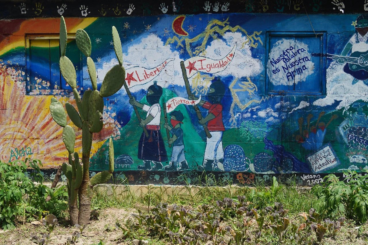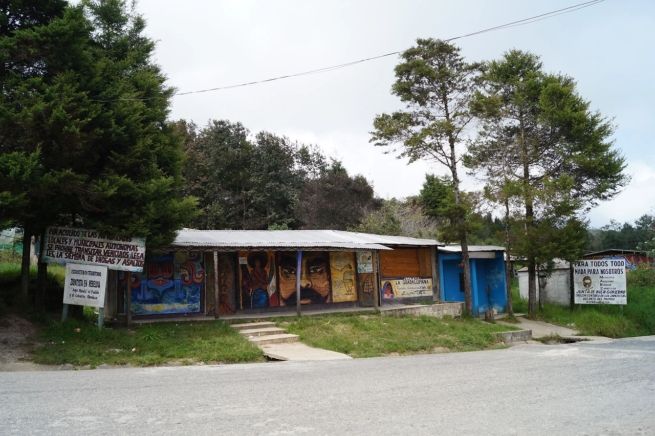 마을의 풍경을 사진기에 담을 수 있는 날이 있고 또 없는 날이 있다. 오벤띡 주민들을 사진기에 담는 것이 금지된 것은 이미 아는 사실이었기에 사람들을 찍을 생각은 전혀 없었지만, 사파티스타 민족 해방군의 진행 중인 ‘역사의 기록'인 그들의 벽화 만큼은 직접 카메라에 담아오고 싶었기에 약간은 흥분된 상태로 오는 길 메모리 카드 제대로 넣고 왔는지 두어 번은 확인한 것 같다.