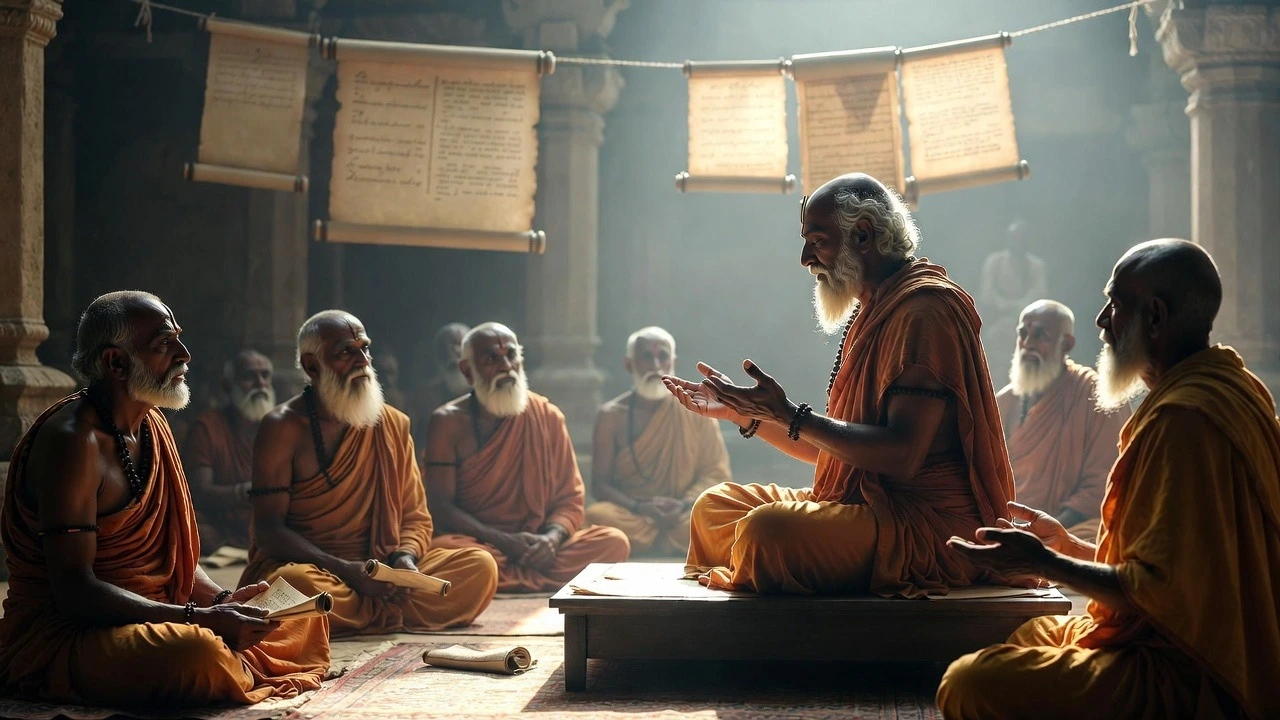 - **논리적 논증**: Shankara는 "sublation" (badha)을 핵심 도구로 썼어요—더 높은 진리가 낮은 것을 부정하는 거예요, 예를 들어 뱀으로 착각한 밧줄을 깨닫는 것처럼요. 세계는 실재처럼 보이지만, 변하지 않는 Brahman을 인식함으로써 부정된다고 해요. 그는 불교나 다른 학파의 이원론적 견해를 비판하며, 내부 모순을 보여줬어요: 어떻게 다중성이 통일에서 생기는데 환상적 베일 없이 가능하냐는 거죠.