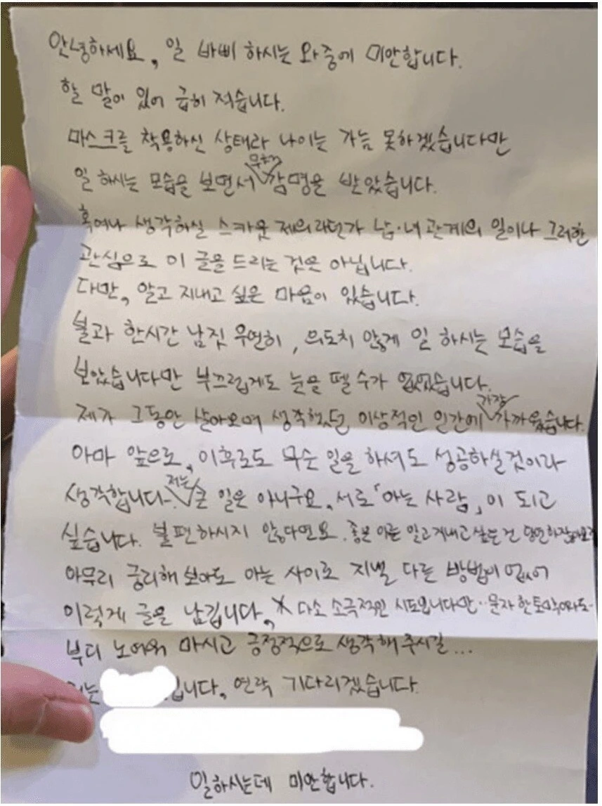 (인터넷에서 퍼온 편의점 여자알바가 받은 고백편지. 이건 진짜 나 아님. 믿어줘~)