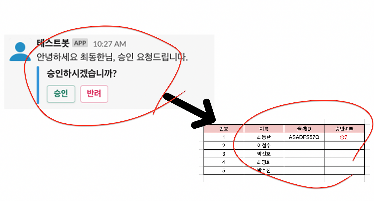 사용자별로 이름, 슬랙 ID 승인여부를 표기해줄 시트를 준비해준다