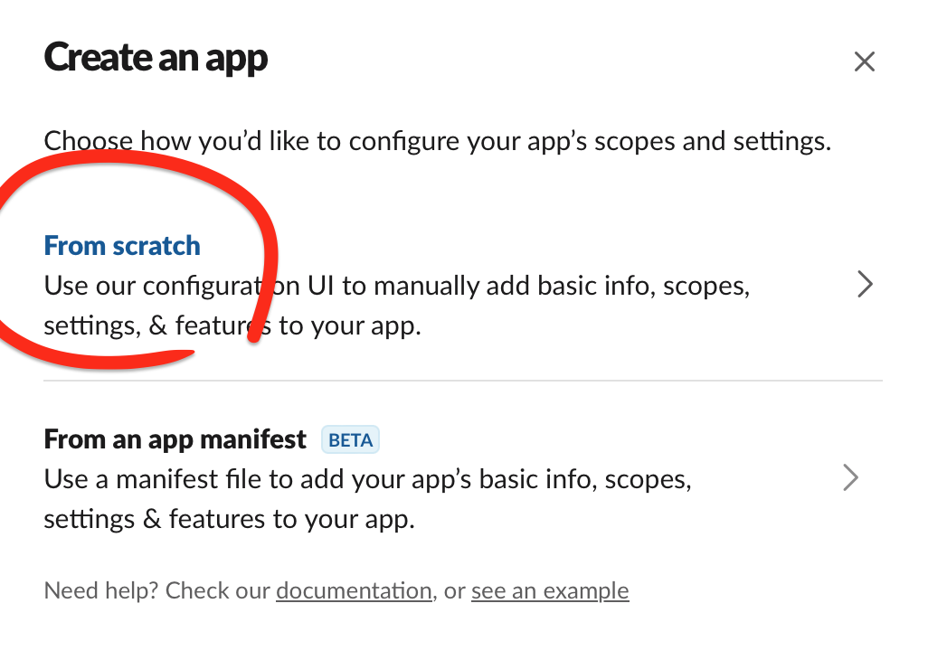 2-1) https://api.slack.com/apps 슬랙 API 페이지에서 오른쪽 상단 Create an app을 클릭