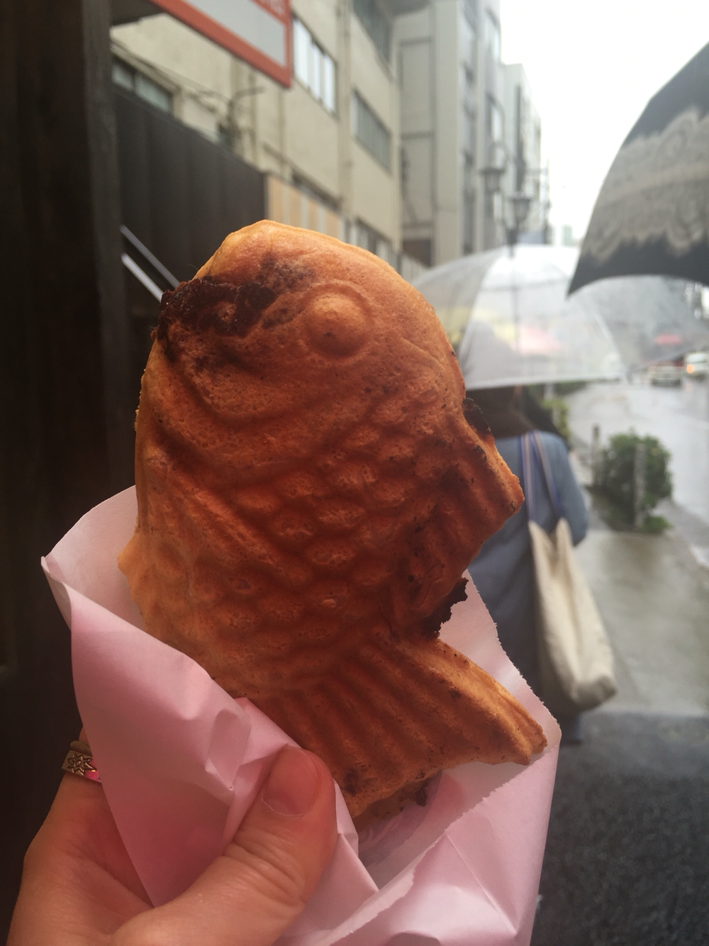 자 이제 다이칸야마로 걸어가려는 순간 붕어빵이 눈에 들어와서 하나씩 사먹고 걸어간다. 비 오는 날 뜨거운 앙이 들은 바삭한 타이야키는 도쿄여행 중 가장 행복한 맛이었다. 여행 자체의 흥을 더 돋궈주는 그런 맛.