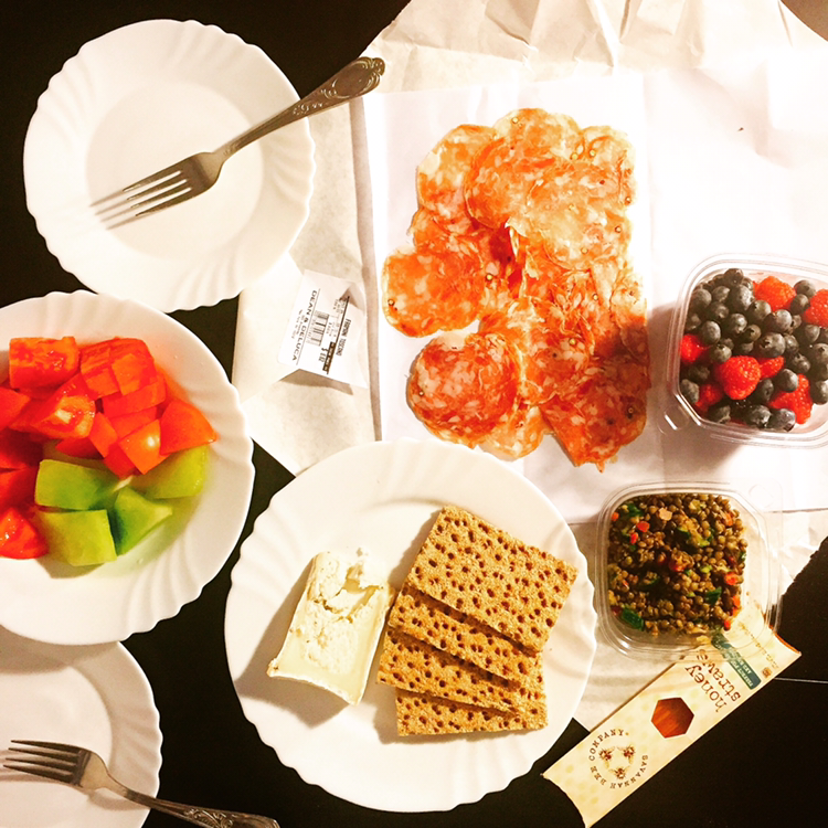 둘째날에 너무 지쳐 딘앤델루카에서 먹고 싶은 걸 잔뜩 샀다. 트러플 염소치즈, 청포도, 토마토, 통밀 크래커, 살라미 등등.