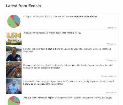 이처럼 에코시아는 실제로 그들이 자연에 어떤 기여를 하고 있는지를 사용자들에게 보여주려 노력한다.