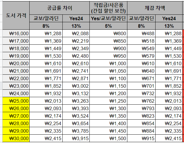 이건 온라인 서점 3사의 5% 적립 외의 3% 추가 혜택에도 미치지 못하는 수준이다. 비교할 수준도 안되지만 편의상 3% 추가 혜택과 상쇄시키자.