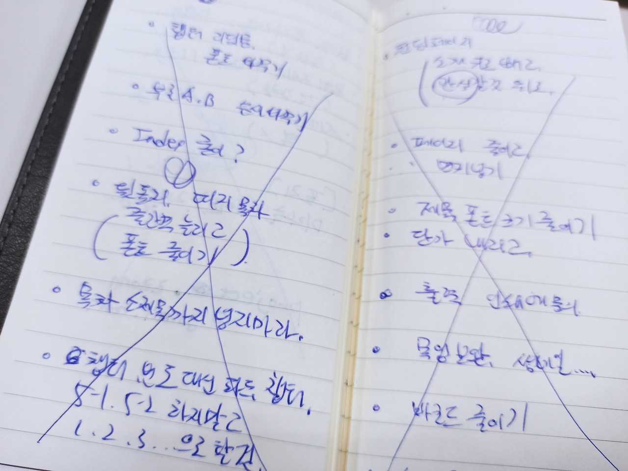 천그루숲 백대표님은 당시 목차의 위치나 ISBN 바코드 크기, 면지 활용법 등 다양한 조언을 주셨는데 무엇보다 큰 성과는 내가 찾아뵙고 조언을 구할 수 있는 업계의 '선배'가 생겼다는 점이다. 개발로 치자면 각종 개발 이슈나 트러블 슈팅에 누군가의 도움을 받을 수는 있겠지만 어깨너머로 보고 따라 할 수 있는 '절정 고수 개발자'를 만나게 되었다는 기쁨에 비할 수 있겠다.