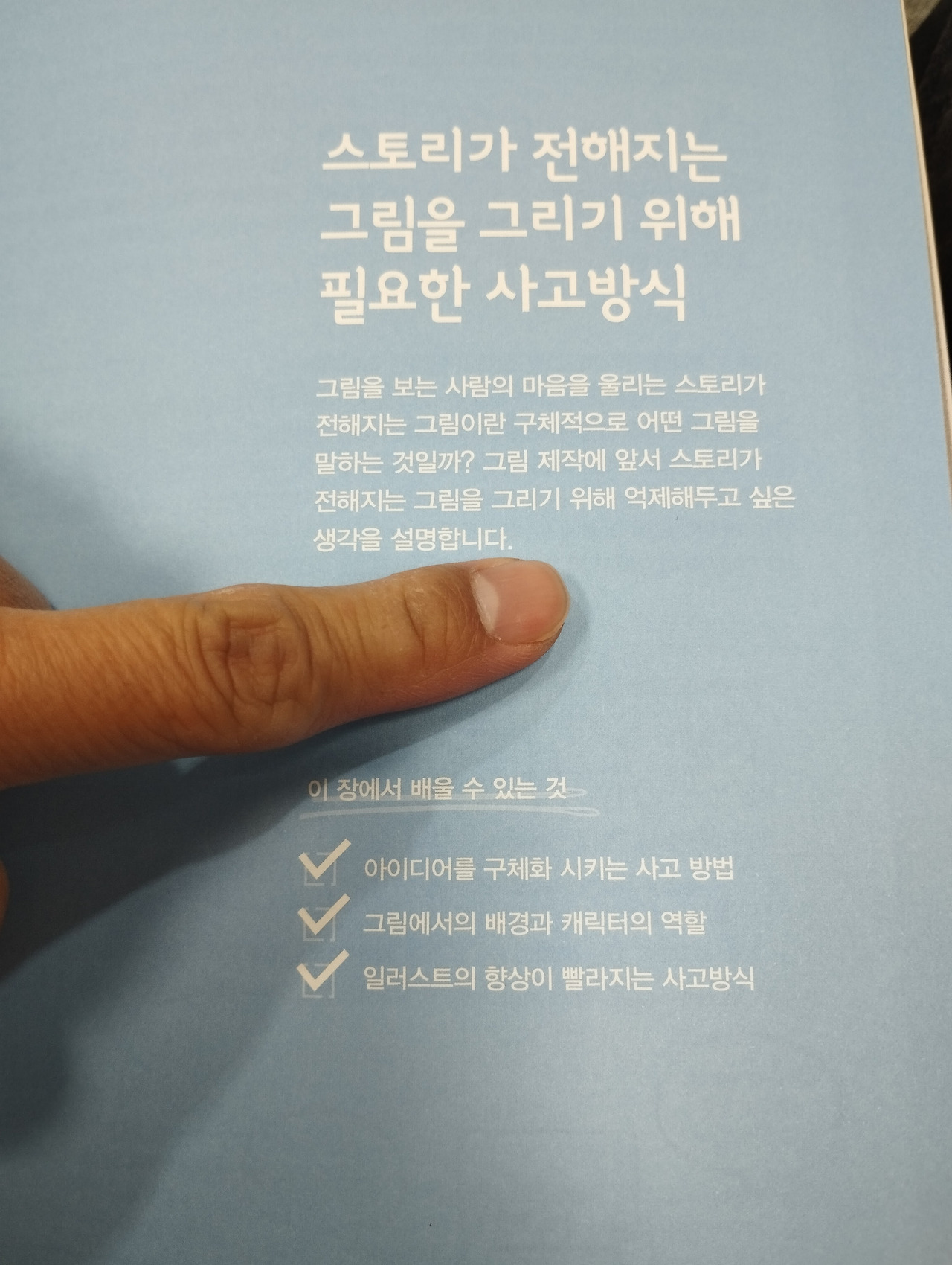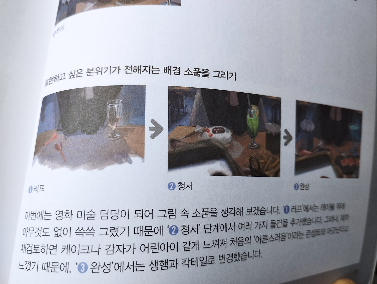 실무에 활용할 때는 전체를 빠르게 통독한 후, 배경에 힘을 실어 그리고 싶을 때 다시 정독하는 게 효율적일 것 같다. 한 장의 그림이지만 한 편의 드라마를 보는 듯한 느낌, 작가님의 노하우를 이 책으로 엿보길 바란다.