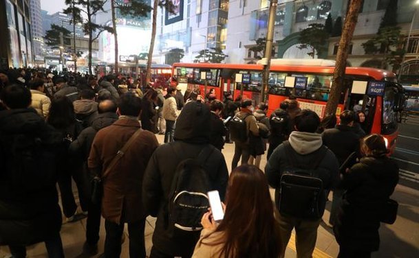 버스를 기다리는 시민들 - 끝이 안 보이는 대기줄은 이제 일상이 되었다