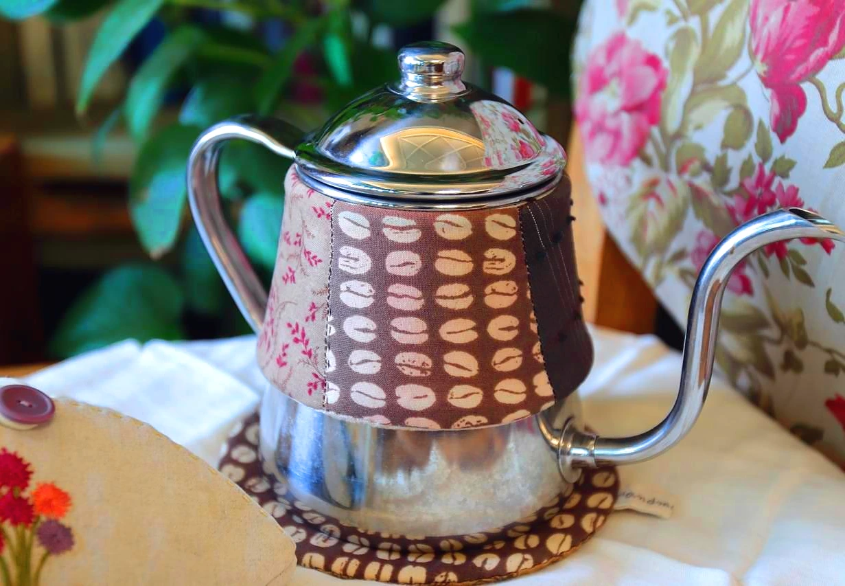 손이 뭉툭한 남편이 뜨거워진 드립포트에 새끼손가락을 데곤 해서 궁리 끝에 커버를 만들어주었다. 만들어주고 나니 전보다 자주 커피를 내려주는 남편. 만드는 수고는 잠깐이다. 그 후 긴 세월 남편의 커피를 종종 얻어마시는 중이다.