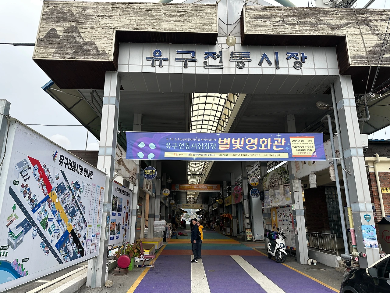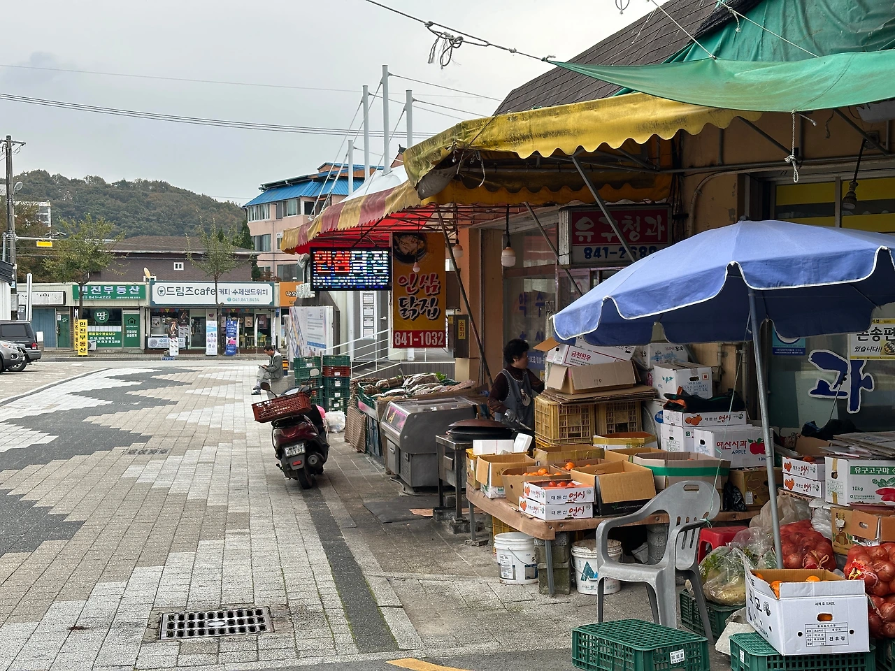 안내판 슥 둘러보고 휑한 시장을 몇걸음 걷는다. 시장 끝에서 끝까지가 불과 100미터도 안되어보인다. 관광객들이 오가는 위치도 아니니 오죽하겠나. 나와 아내가 마곡사에 온 게, 그러니까 임신하기 전 해였던가. 그땐 단풍도 제법 물이 들고 해서, 마곡사는 꽤 재밌게 구경하고 돌아갔다. 그때도 이리 저리 임신 고민도 있고 하던 때라, 언젠가 이 풍경에서 아이와 함께, 이 자리에 아이의 사진을. 이라는 생각도 해보기도 했었는데. 오늘 와보니 단풍은 멀었고 날씨는 흐린 것이 비 예보다. 그래서 원래 가려던 마곡사는 패스하고 괜스레 닭강정만 사러 왔다. 그런데, 괜히 닭강정 하나 먹겠다고 씁쓸~