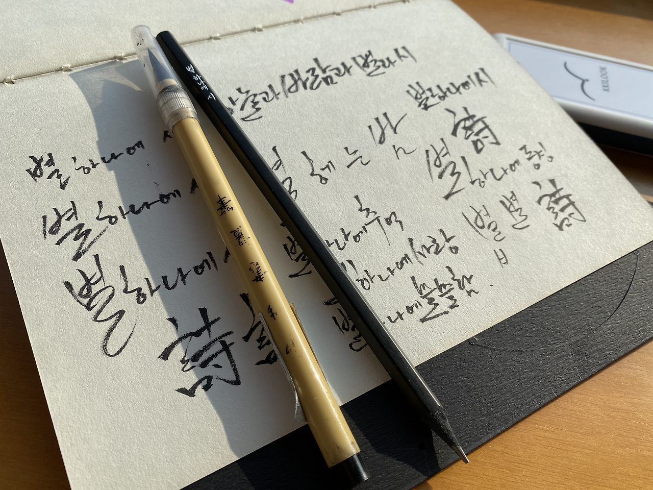 바깥양반은 선물을 받아와 내게 더 의미있을 거라며 내게 주었고 나는 오랜만에 붓펜을 꺼냈다.