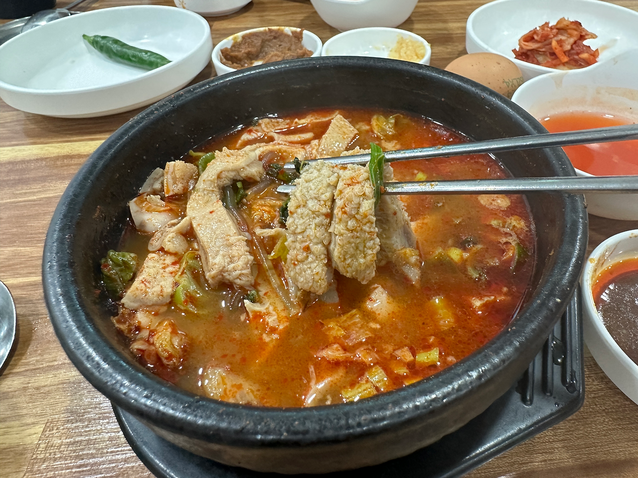 나와 형님은 먹어도 먹어도 줄지 않는 내장탕을 천천히 먹었다. 쇠고기선지해장국도 맛있었던 기억이 있다. 그러나 내장탕의 인심이 워낙 고맙다. 단순히 11,000원에 이 양, 가성비만으로만 먹는 음식도 아니라서 양을 손질한 자태가 퍽 좋다. 눅진할 정도로 푹 삶아진 양이 넓적하게 잘라져서 식감이 정말 좋다. 서울에서 먹는 식으로 무슨 칼국수면마냥 얇게 썰어낸 것이 아니라 손가락 크기는 되도록 잘라내니 입 안에서 구르는 그 질이 푹 우려진 국물과 잘 어우러진다.