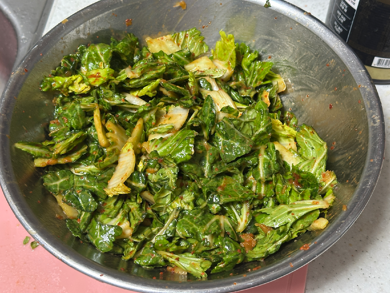 엄마에게 이런 소식을 전해드렸다. 다행히 그 신선한 총각김치 양념을 만난 봄동무침은...맛있었다 흑흑.