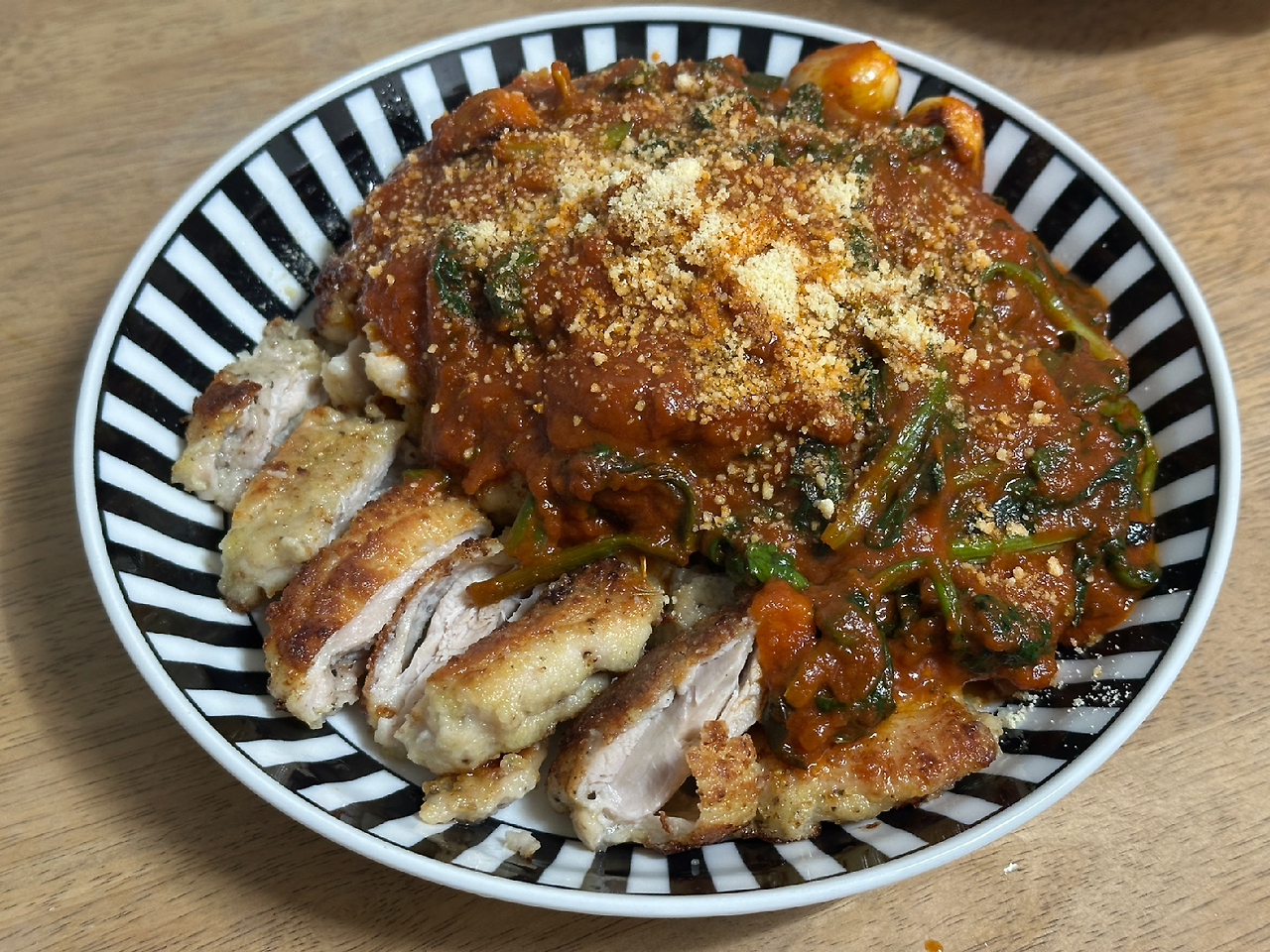 아내와 아이를 부른다. 새로 지은 밥에, 그대로 시금치와 치킨 스테이클 올려 한입. 푹 익은 시금치가 맛깔나게 졸아붙은 토마토소스와 버무려져, 닭기름의 풍미를 품고, 올리브유의 향기를 품고, 치킨스테이크와 함께 입을 채운다.