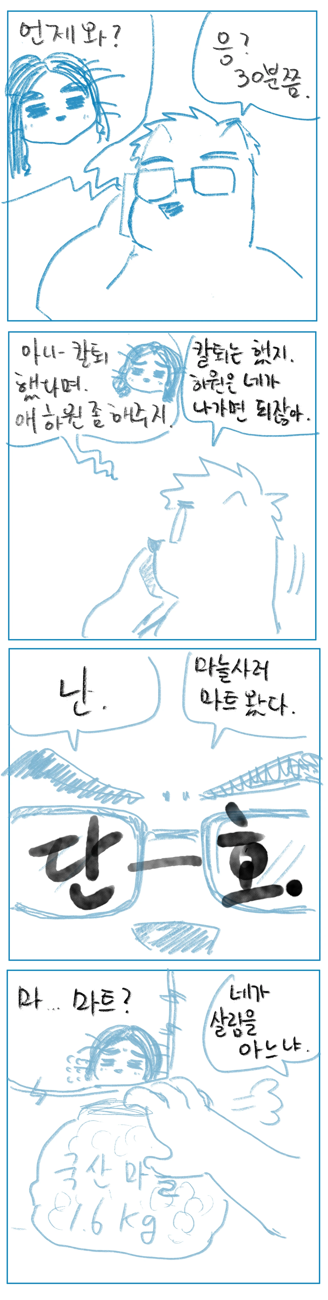 - 아니- 칼퇴했다며. 하원 좀 해주지.