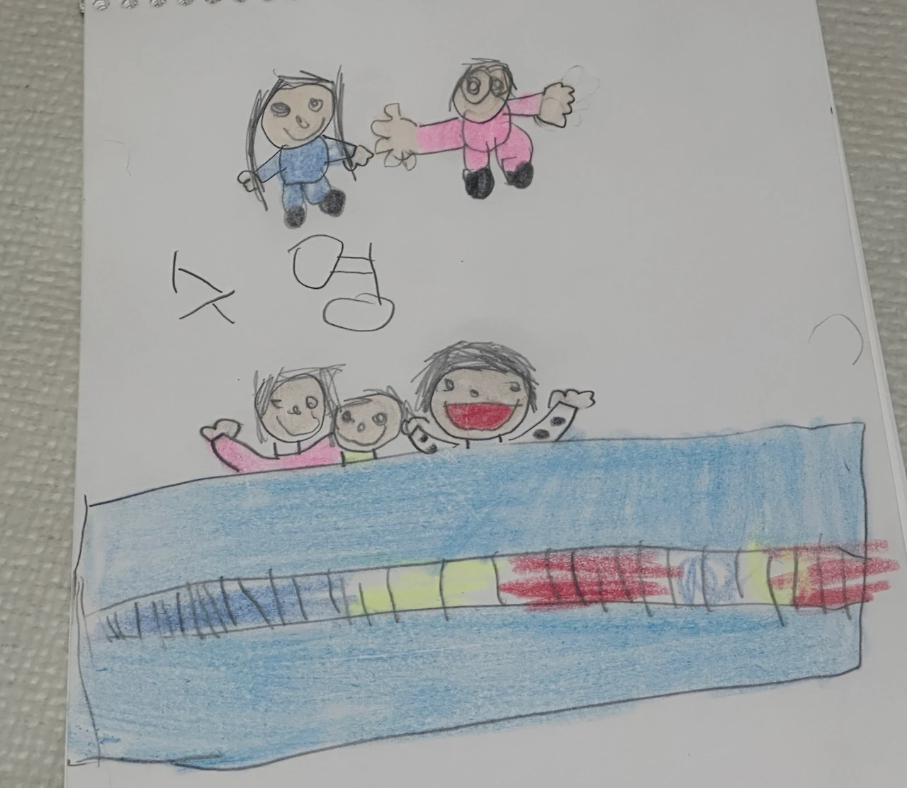 그리고 딸의 손에 힘이 붙어, 이제 여섯살이 된 아이는 자기의 생각을 제법 뚜렷하게 그림으로 표현할 수 있게 되었다. 처음 26개월 무렵에 물감과 붓을 사주어 색칠놀이를 시킨 이래로 늘 그림 그리기를 즐기던 딸은 종종 뚜렷한 기억을 그림으로 남기게 되었다.