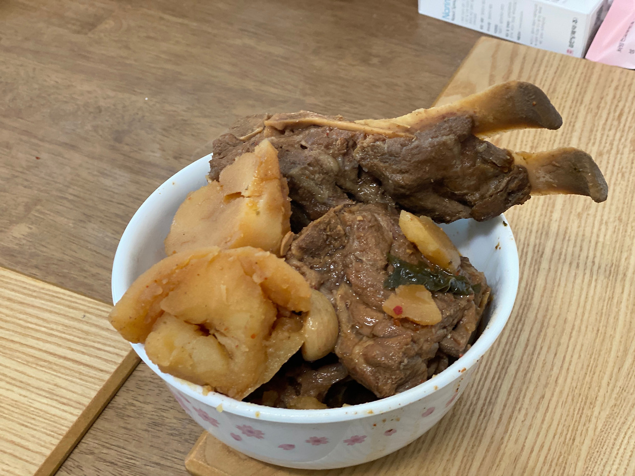 지난 설 때 엄마가 건네 준 마지막 식재료를 해동했다. 검은 봉지 속에 5키로는 될법한 묵직한 고기덩어리였는데, 나는 이것이 갈비탕에 들어갈 갈비일 것이라고 생각하고 있었다. 워낙 엄마가 챙겨주는 것들이 많아 설명도 대충하시고 나도 대충듣고 집에 와서 봉지째로 그대로 냉동실에 넣었다. 당시에도 이미 얼어있는 상태였던데다가 소분을 하겠다고 녹이고 어쩌구 하기엔 그 때 이미 받아온 게 꽤나 많았다. 일단 이 정체불명의 검은 봉지는 나중에 열어보기로.