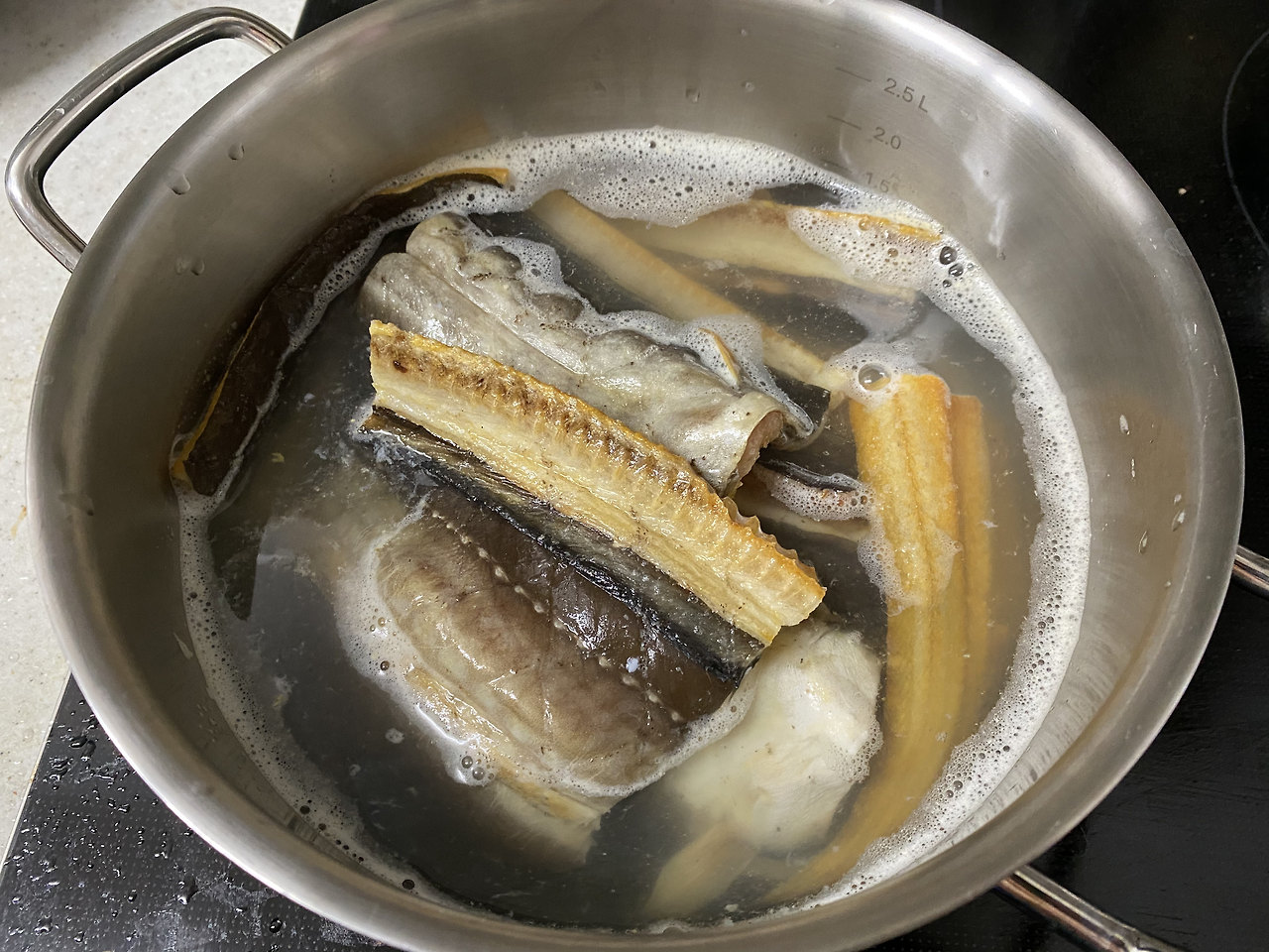 아나고 알기를 우습게 아는 것은 나도 마찬가지라, 물론 종종 비싼 돈을 주고 숯불에 구워먹기도 하고, 어린 시절에는 연탄불에 구워먹는 것을 큰 호사로 알기도 했지만 이녀석이 대수롭진 않다. 붕장어는 국을 끓이면 맛있다. 된장을 살짝 풀고 우거지를 넣고 끓이면 단백질 가득한 이녀석의 살집이 뽀얀 국물을 뿜어낸다. 아니 아무리 그래도 붕장어 포인지도 모르고 냉동실에 1년이고 얼마고 넣어놨더라니 이게 실화란 말이냐. 겨울에 발견했으면 얼마나 좋았을까. 뜨끈한 아나고 국물이면 추위가 다 녹아내릴 텐데.
