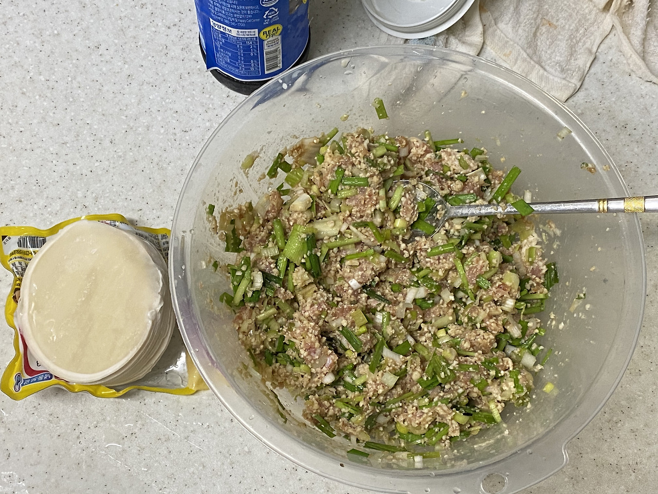뻑뻑해!!! 군만두를 만들면 안될 것 같다. 남은 만두속은 쪄먹기로 했다.