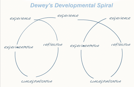 이 "미성숙한 성장의 과정"을 바라보면서 마지막으로 듀이의 교육철학의 "성장의 연속"의 원리를 소개드립니다. 학습자들이 이러한 미성숙에 기반하여 경험-반성-개념화-실습, 다시 경험-반성-개념화-실습-재경험으로 자신의 인지체계를 구축해간다는 이론입니다. 이것을 위에 설명된 뇌과학에 접목해볼까요?