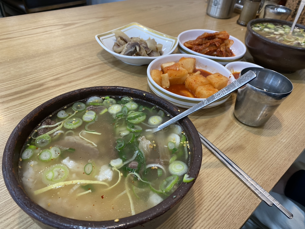 고기는 푸짐, 소머리고기인듯 비계를 따로 한접시 내어준다. 퍼먹어도 퍼먹어도 계속 나오는 고기를 그래도 반쯤 비운 뒤에 비계를 국에 후루룩 말았다. 쫄깃한 소 비곗살이 국물의 온기에 부드러워져 눅진하게 혀에 감긴다. 햐.
