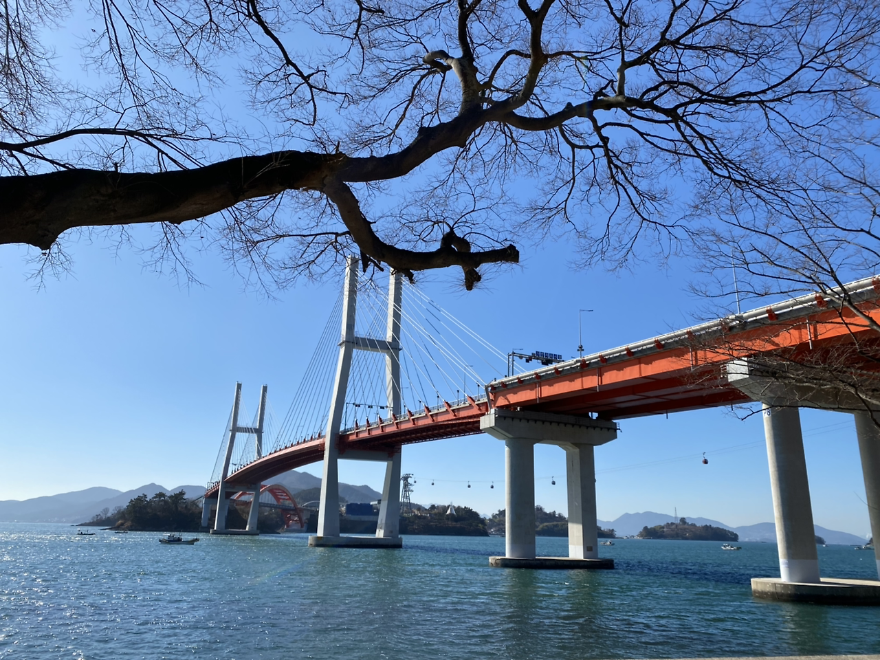 -라고 생각을 했습니다만, 사천케이블카를 타보니 또 그렇지 않더군요. 우리의 기대를 배반하지 않고 케이블카도 대성공이었다. 겨울철, 평일, 코로나 등의 변수로 케이블카는 다섯대 중 두엇만이 사람을 태우고 산과 섬을 넘나들고 있었다. 나는 바깥양반과 단 둘이 10인승 케이블카를 점유하고 실컷 풍광을 맛봤다. 전망대 꼭대기에 올라갔을 때는 추울 것이라는 우려와는 달리 포근한 햇살과 산들바람이 우릴 맞아주고 있었다. 뿌듯한 수확이다. 농가섬과 사천 케이블카 둘 중 한 곳을 고르라면 꽤나 고민이 될 것 같다. 당연히 둘 다 묶어서 즐길 수 있는 여행지니까 우열을 가릴 필요는 없고 둘 모두를 가는 게 가장 좋을 테지만. 가장 의미있었던 남해 코스로 농가섬을 뽑을지 사천케이블카를 뽑을지, 고민을 좀 해봐야 할 것 같다.